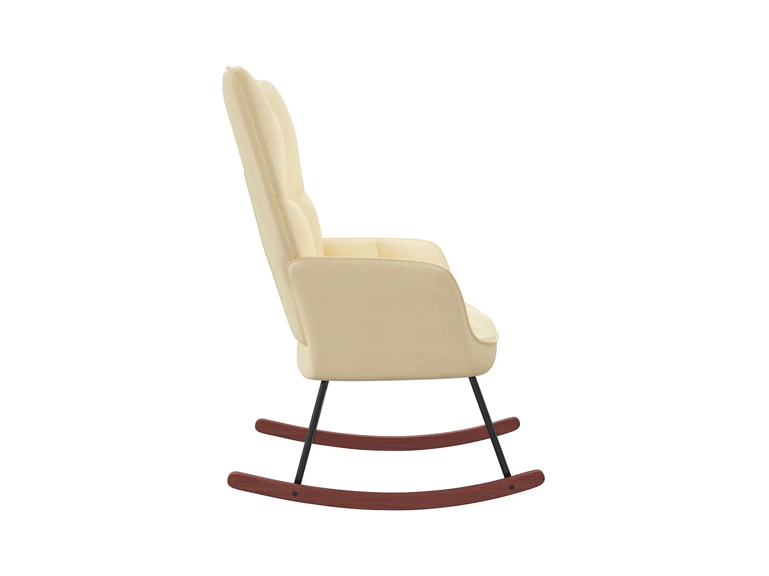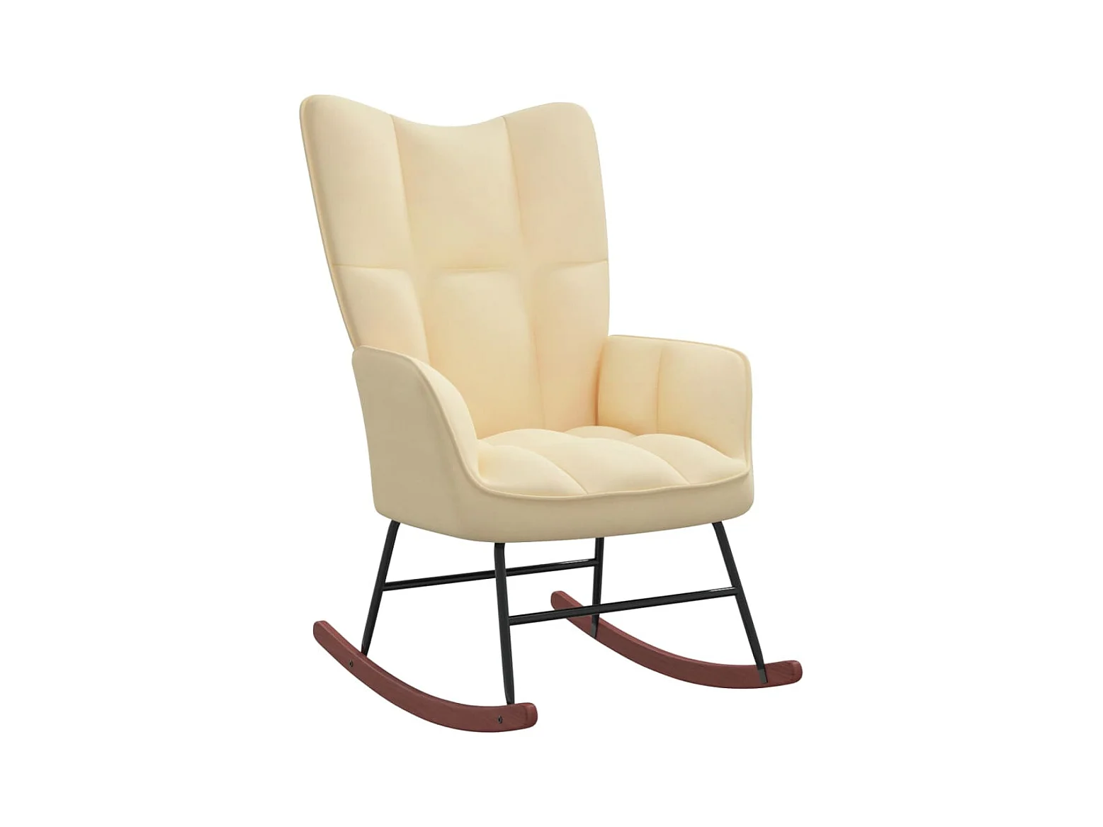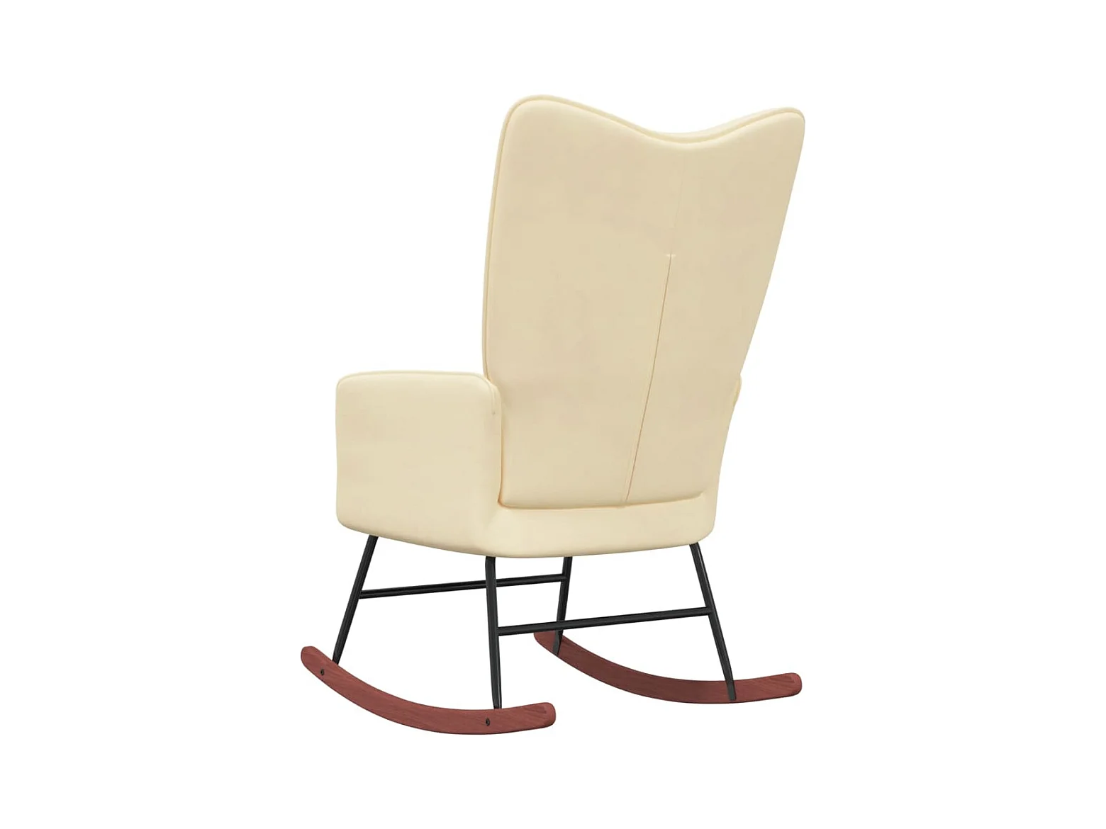 Fauteuil à bascule pieds en bois massif d'hévéa Crème Velours