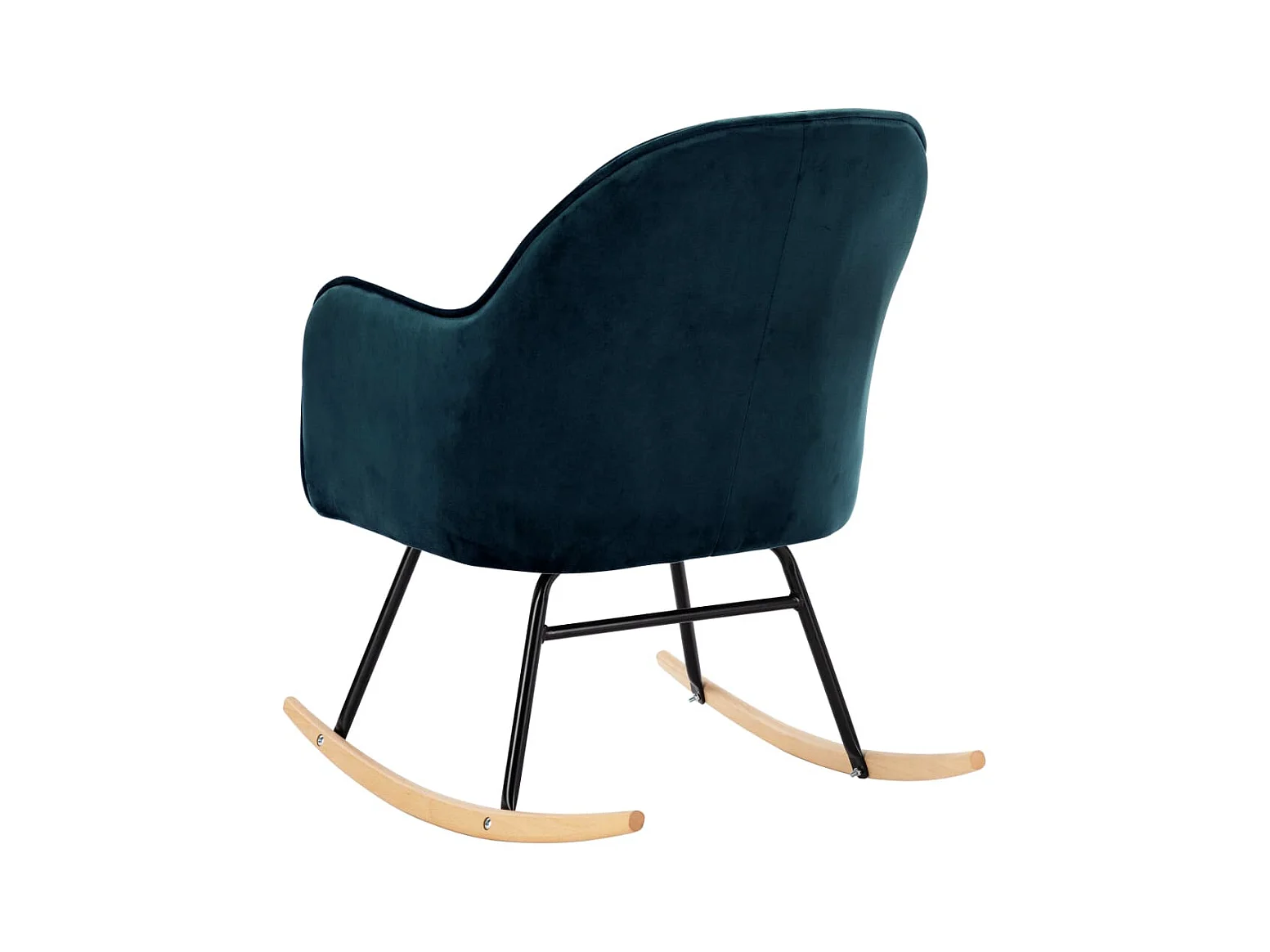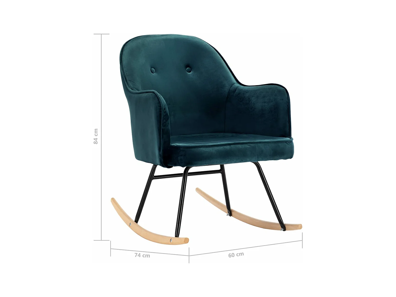 Fauteuil à bascule et pieds en bois massif d'hévéa Bleu Velours