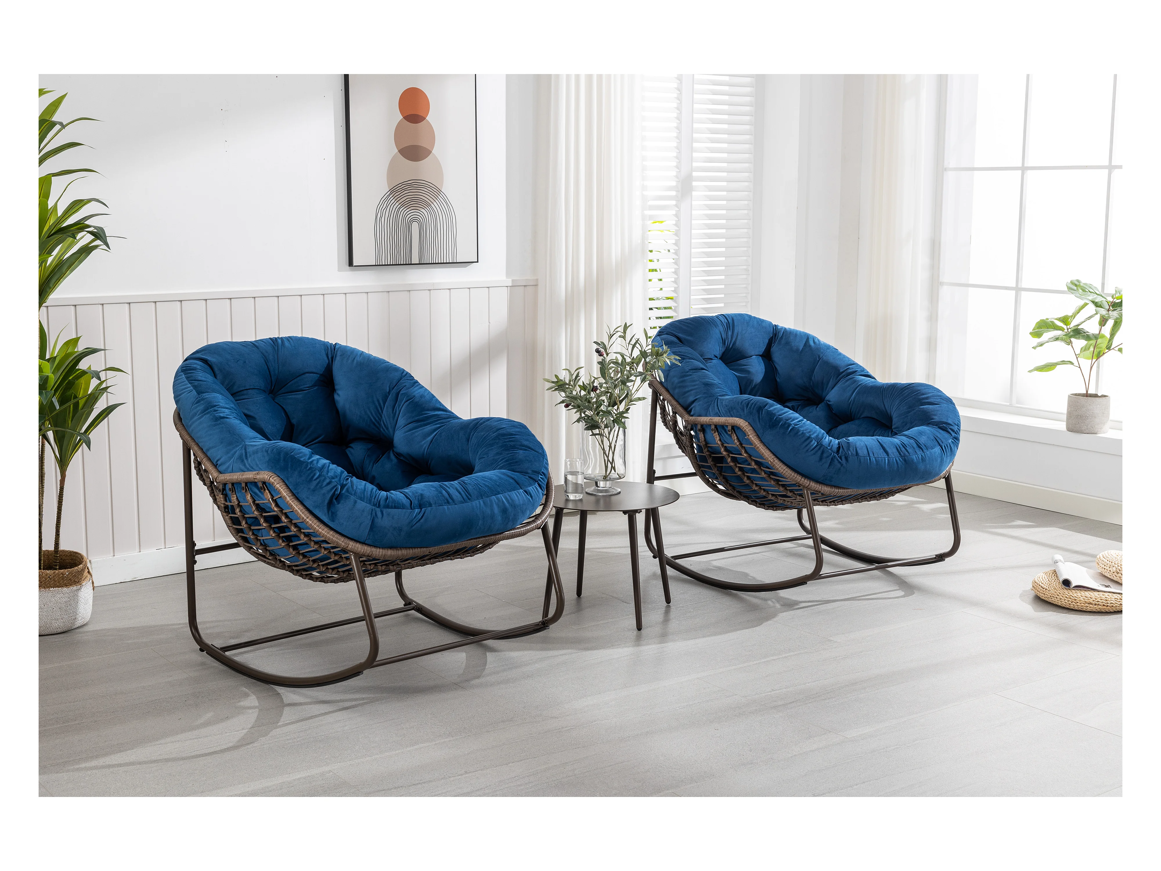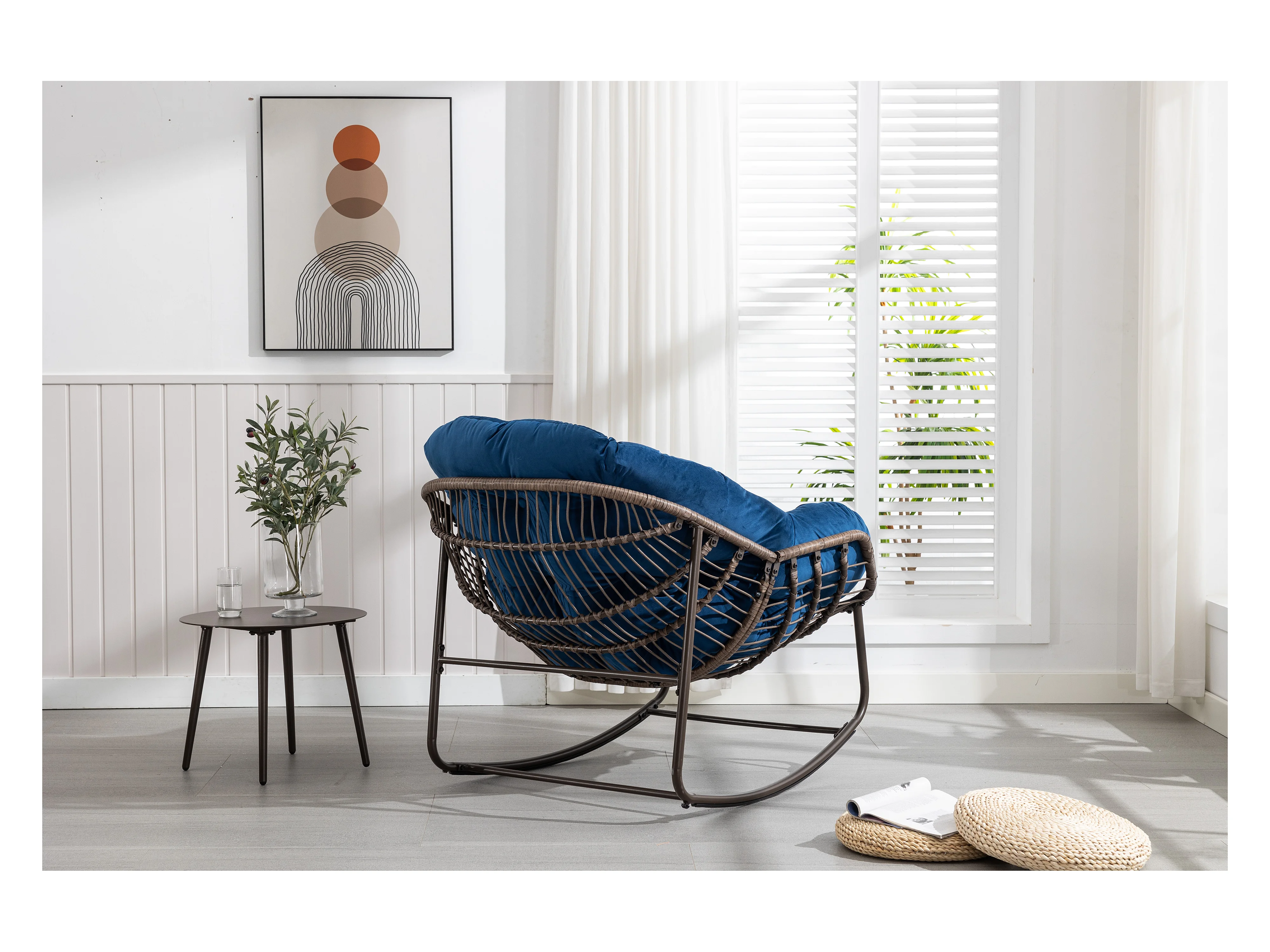 Chaise à bascule d'extérieur en rotin avec coussin en coton, dossier réglable, structure en acier inoxydable, coussin gris (43,7 x 37,2 x 31,5 cm)