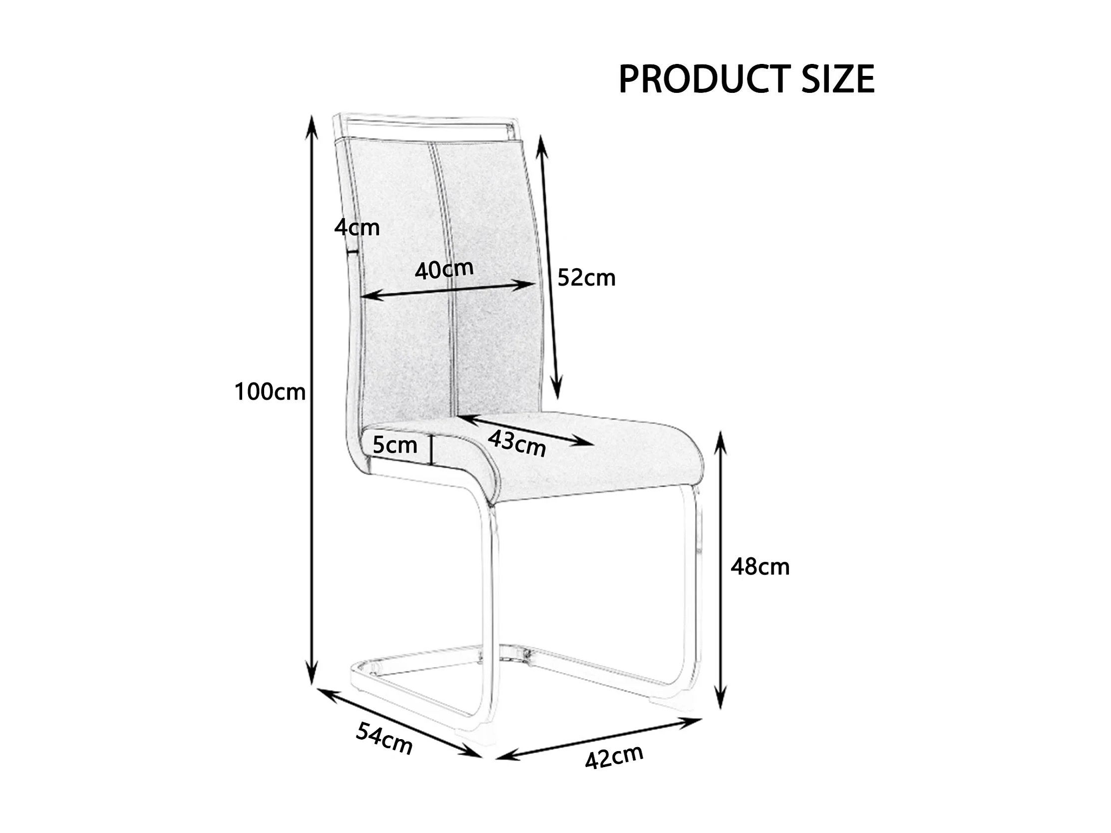 Chaise à piétement luge Lot de 4 - Piétement en métal chromé Pouvant supporter jusqu'à 120 kg Rembourrage souple avec housse en similicuir - Gris