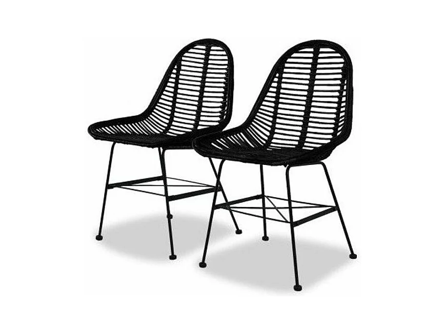 Chaise assise rotin noir et métal noir Noven - Lot de 2
