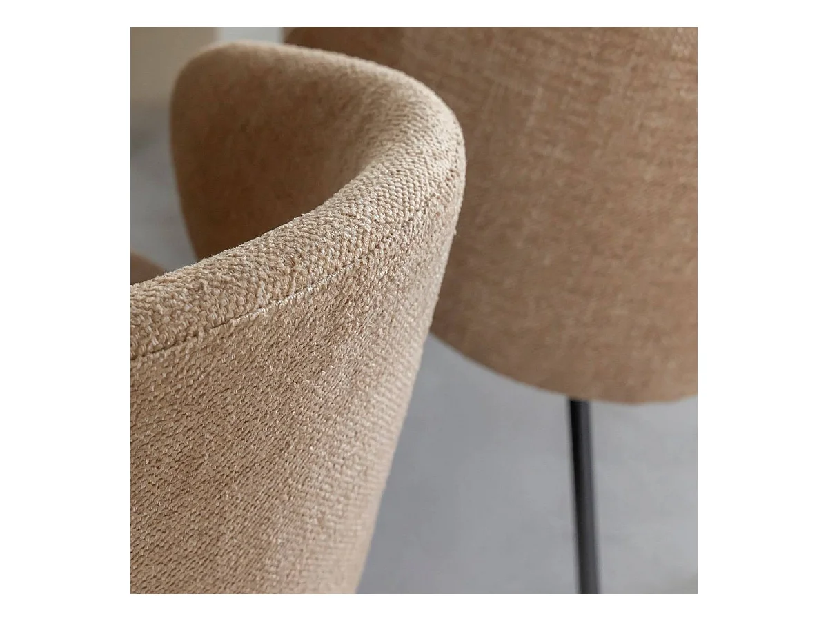 Chaise avec accoudoirs ronds en tissu sable et pieds en métal Cléa (lot de 2)