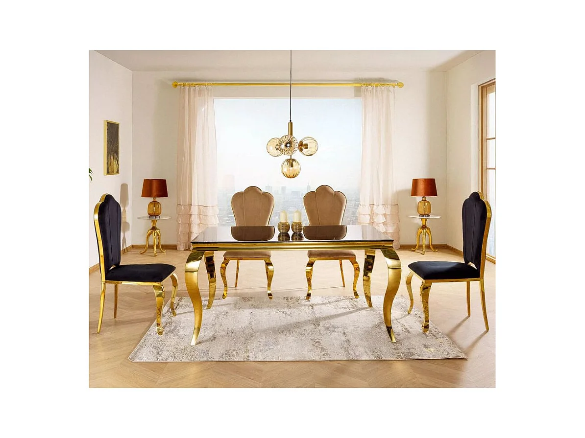Chaise baroque en velours noir avec dossier haut et pieds métal doré Maiwenn