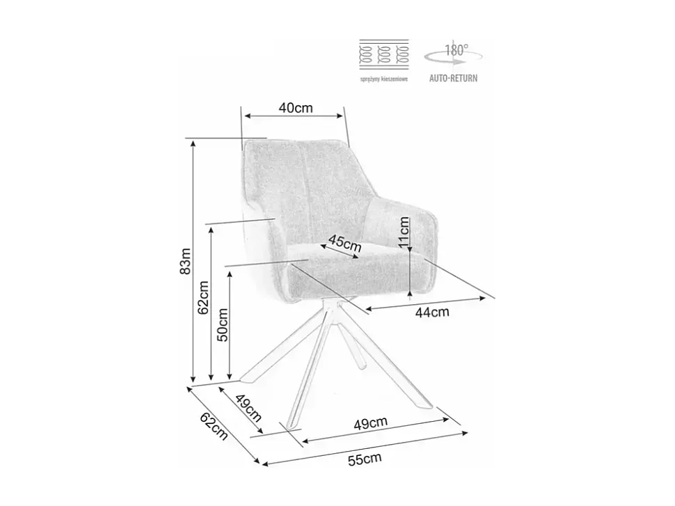 Chaise beige pivotante tissu avec assise à ressorts ensachés NANO