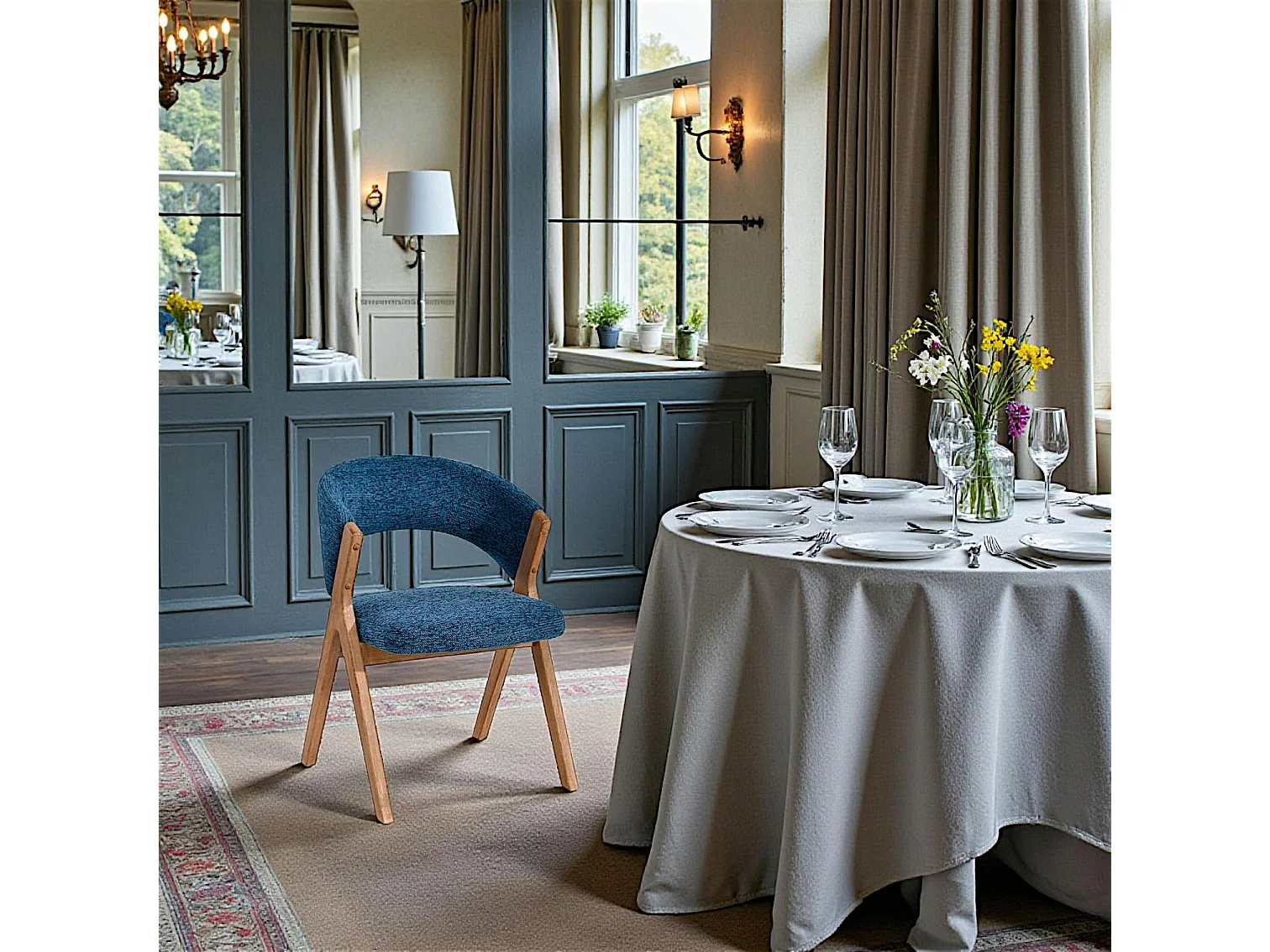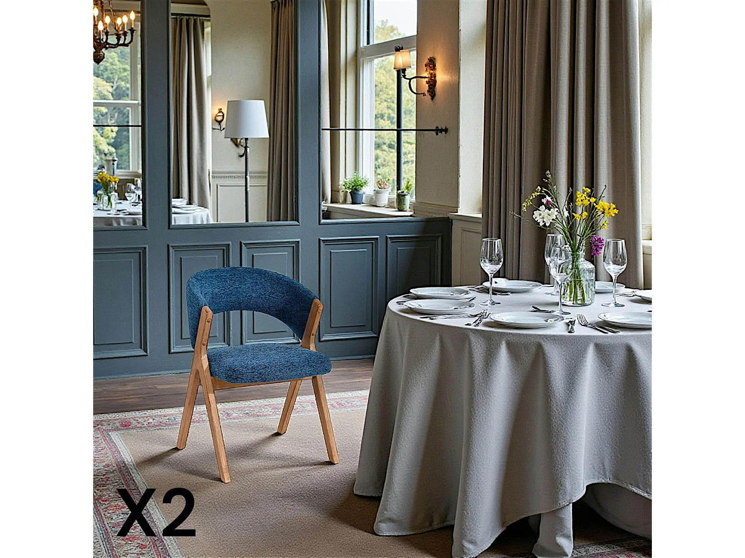 Chaise bleue bois et tissu, forme ronde (lot de 2) AGADE