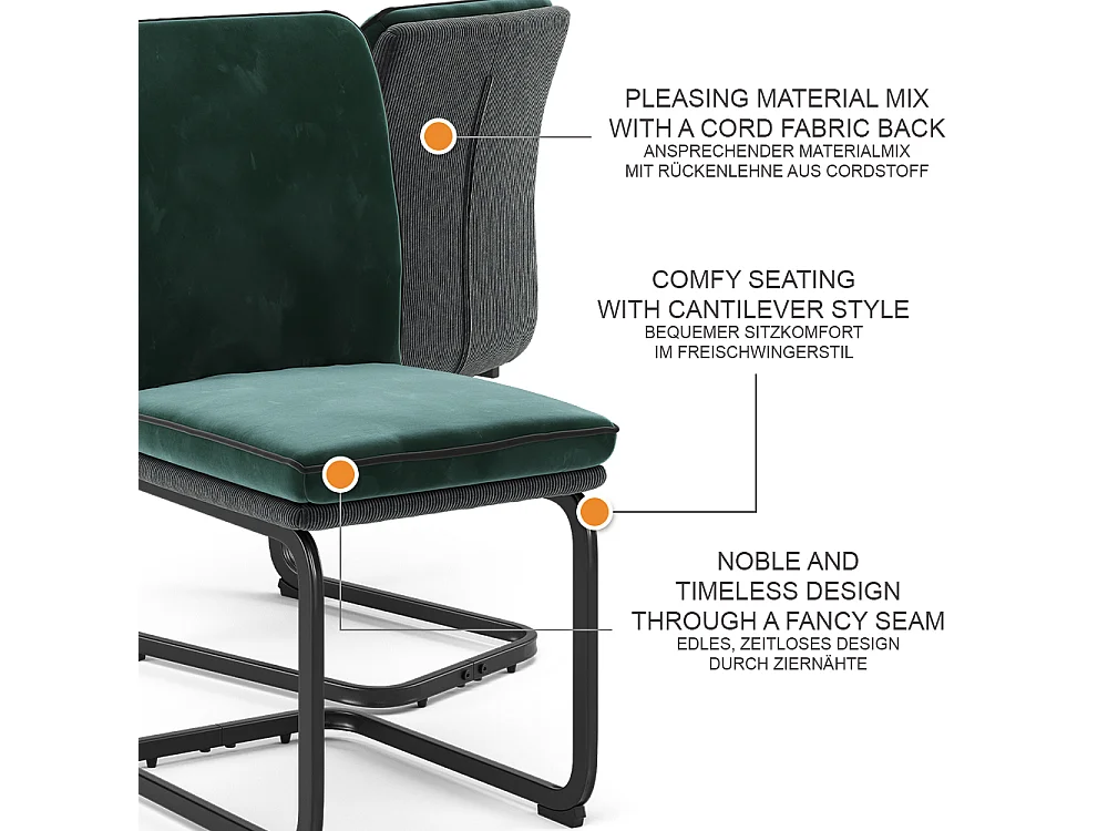 Chaise cantilever vert foncé 49x63.5x95.5 eleganza