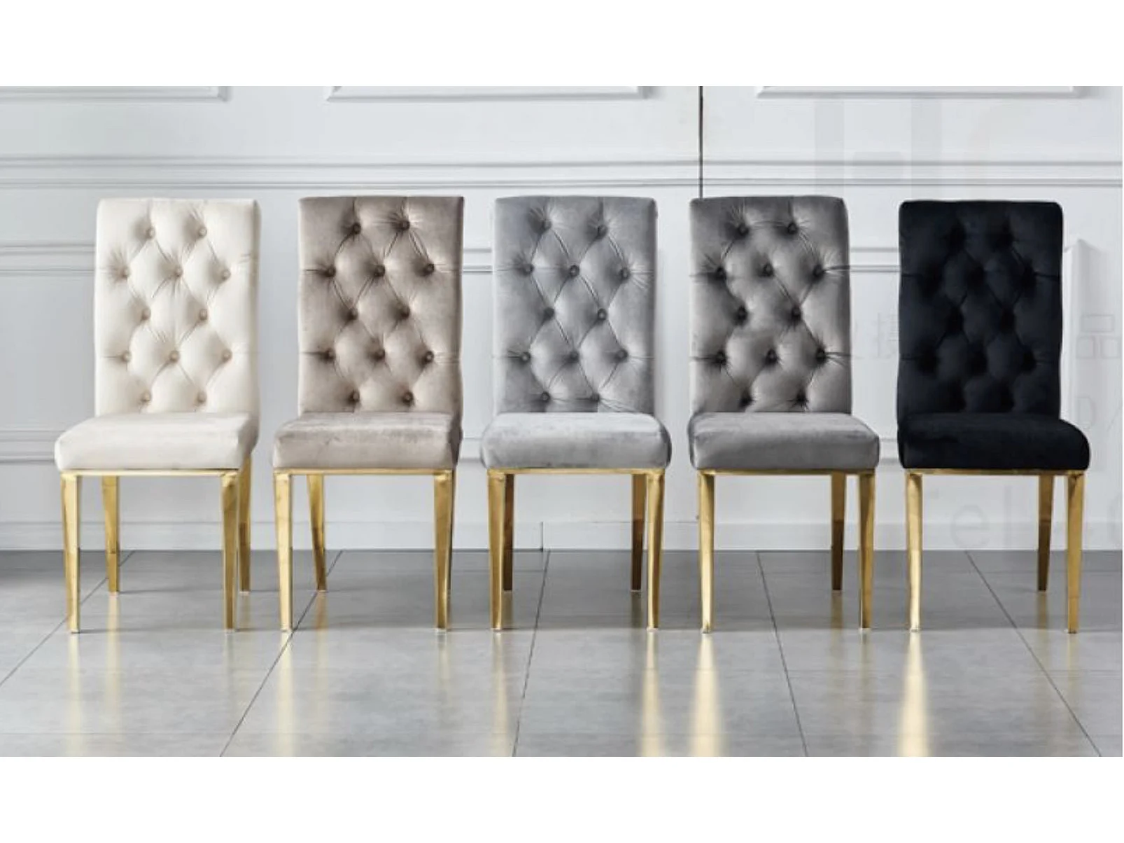 Chaise capitonnée avec bouton velours et pied métal doré Kavana - Lot de 6-Beige foncé