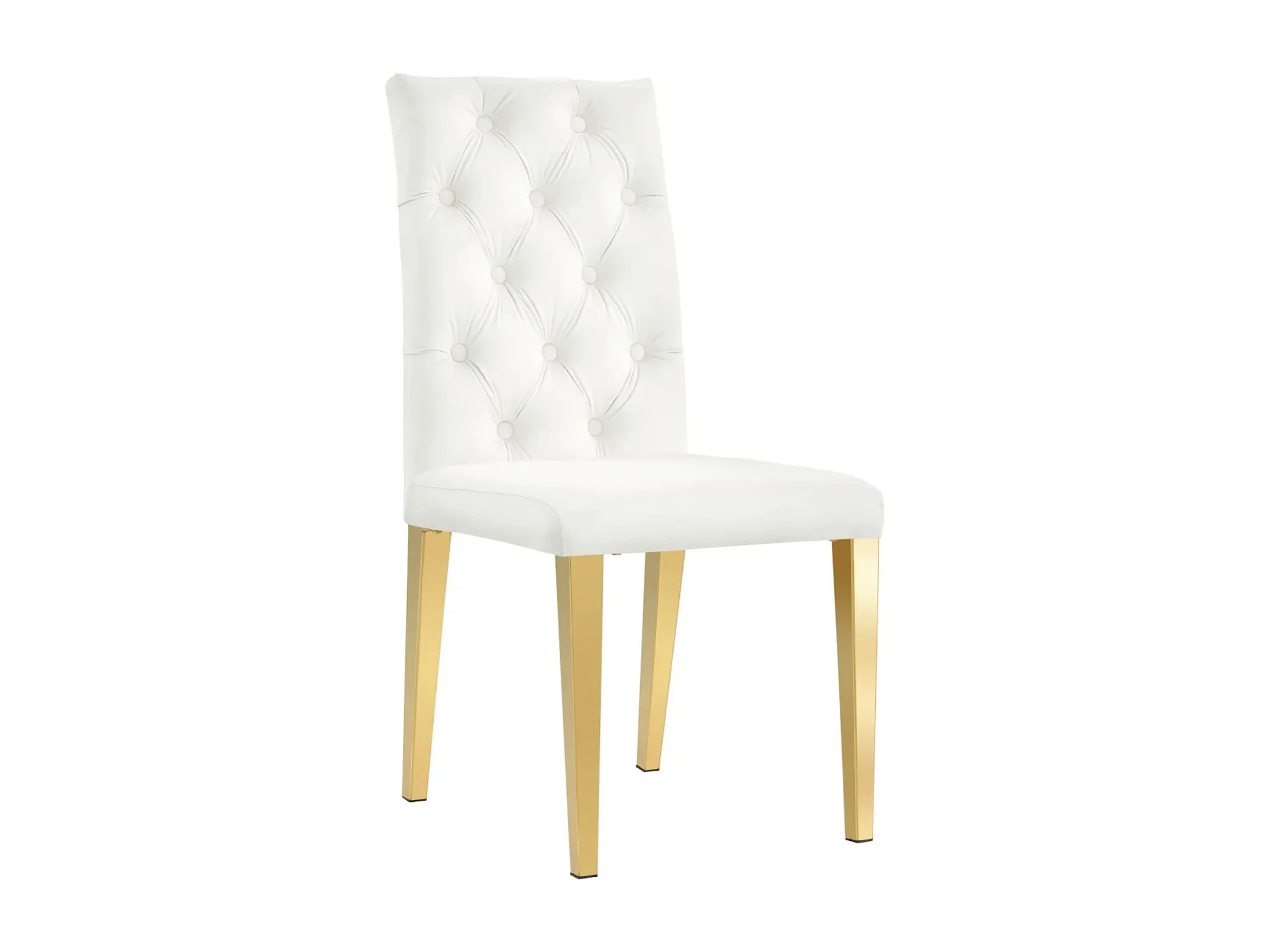 Chaise capitonnée avec bouton velours et pied métal doré Kavana - Lot de 6-Ecru