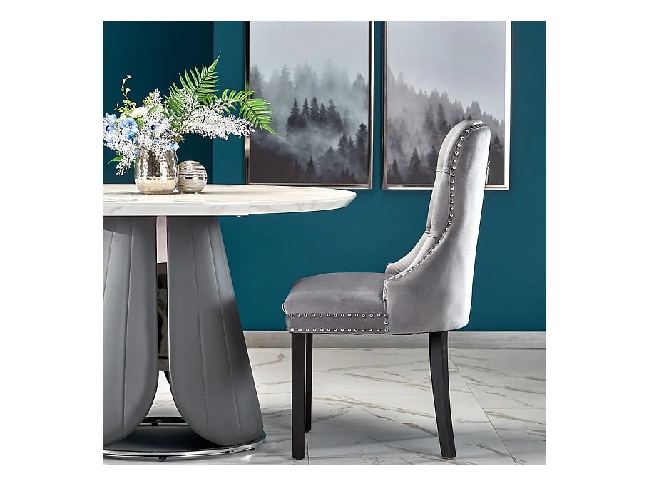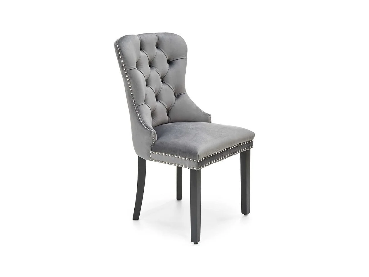 Chaise capitonnée en velours gris avec pieds noirs en bois massif BERENICE