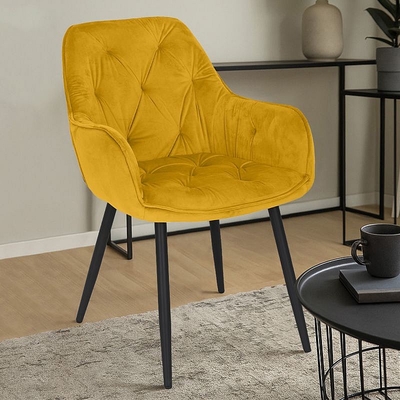 Chaise capitonnée en velours jaune et pieds en métal noir - STERN 2