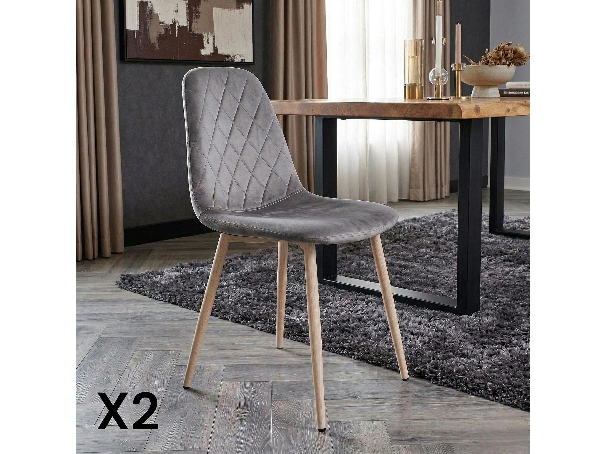 Chaise capitonnée velours gris taupe HAWAI (lot de 2)