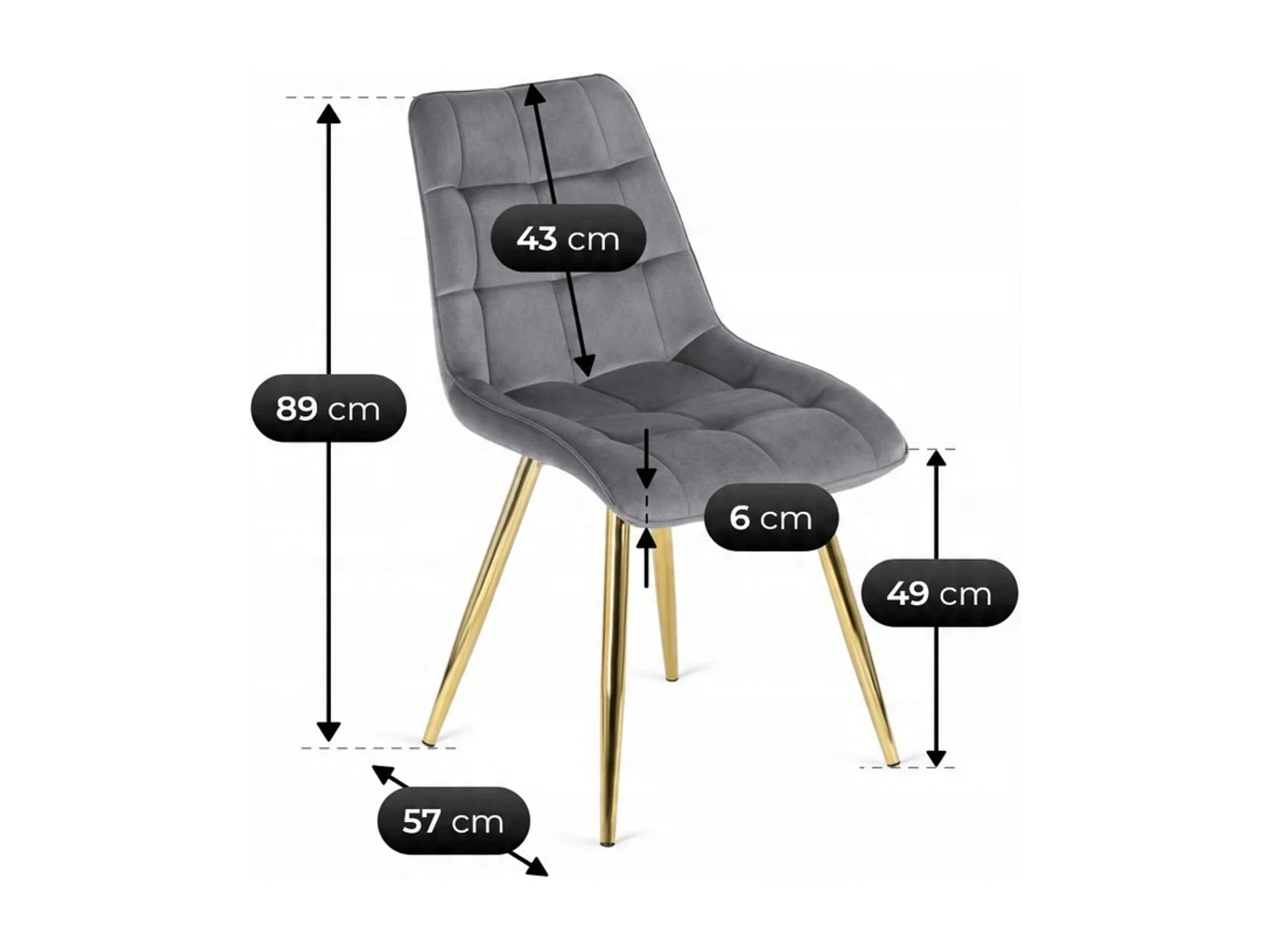 Chaise en velours matelassée LUMO Graphite Foncé pieds noirs