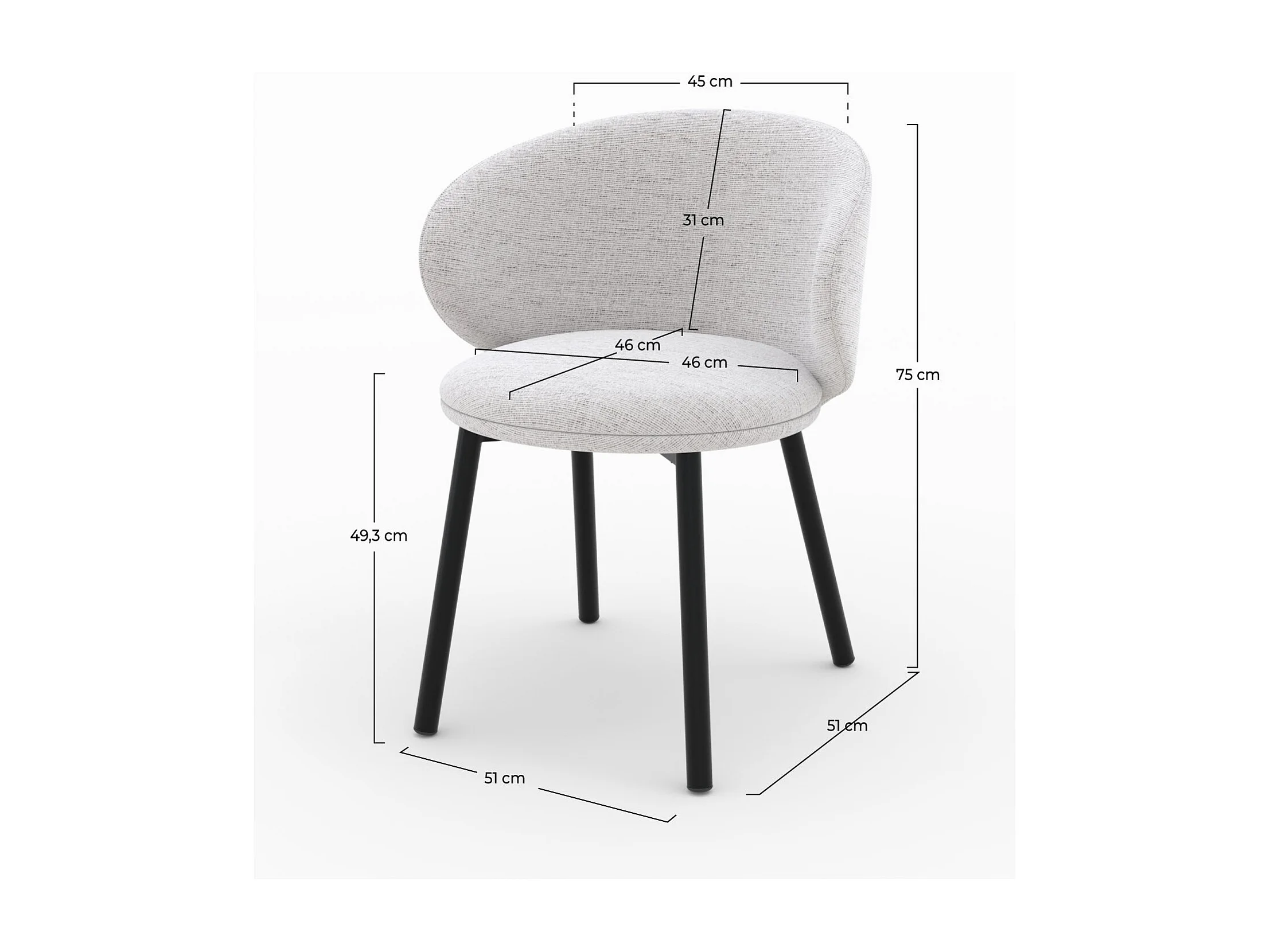 Lot de 2 chaises en tissu gris clair chiné et pieds noirs - Cécilia