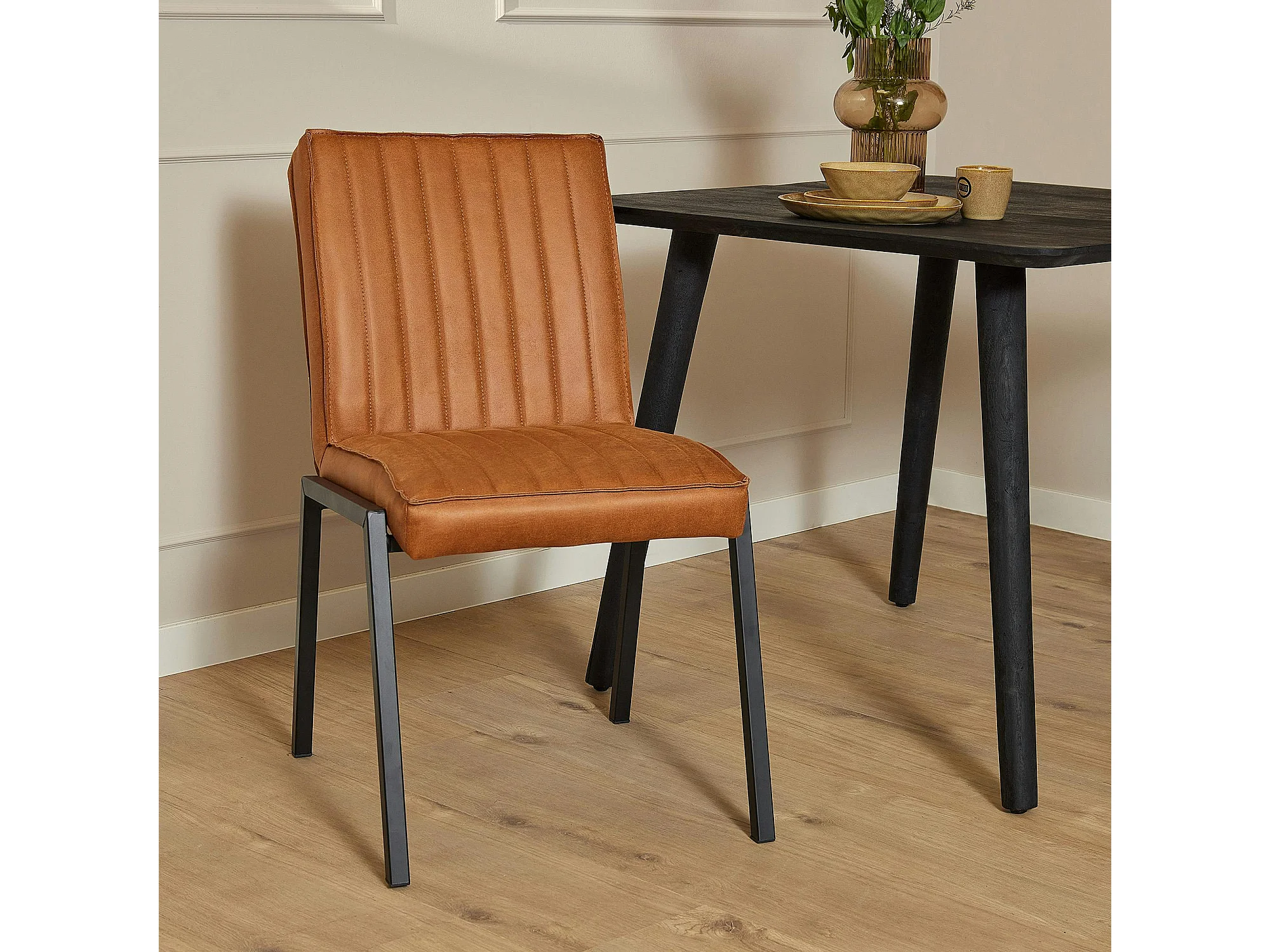 Chaise cognac rembourrée à bandes (lot de 2) CORTINA