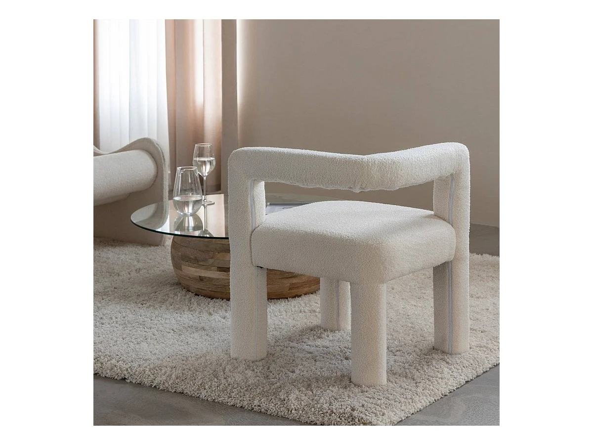 Fauteuil d'angle en tissu bouclette blanc Nora