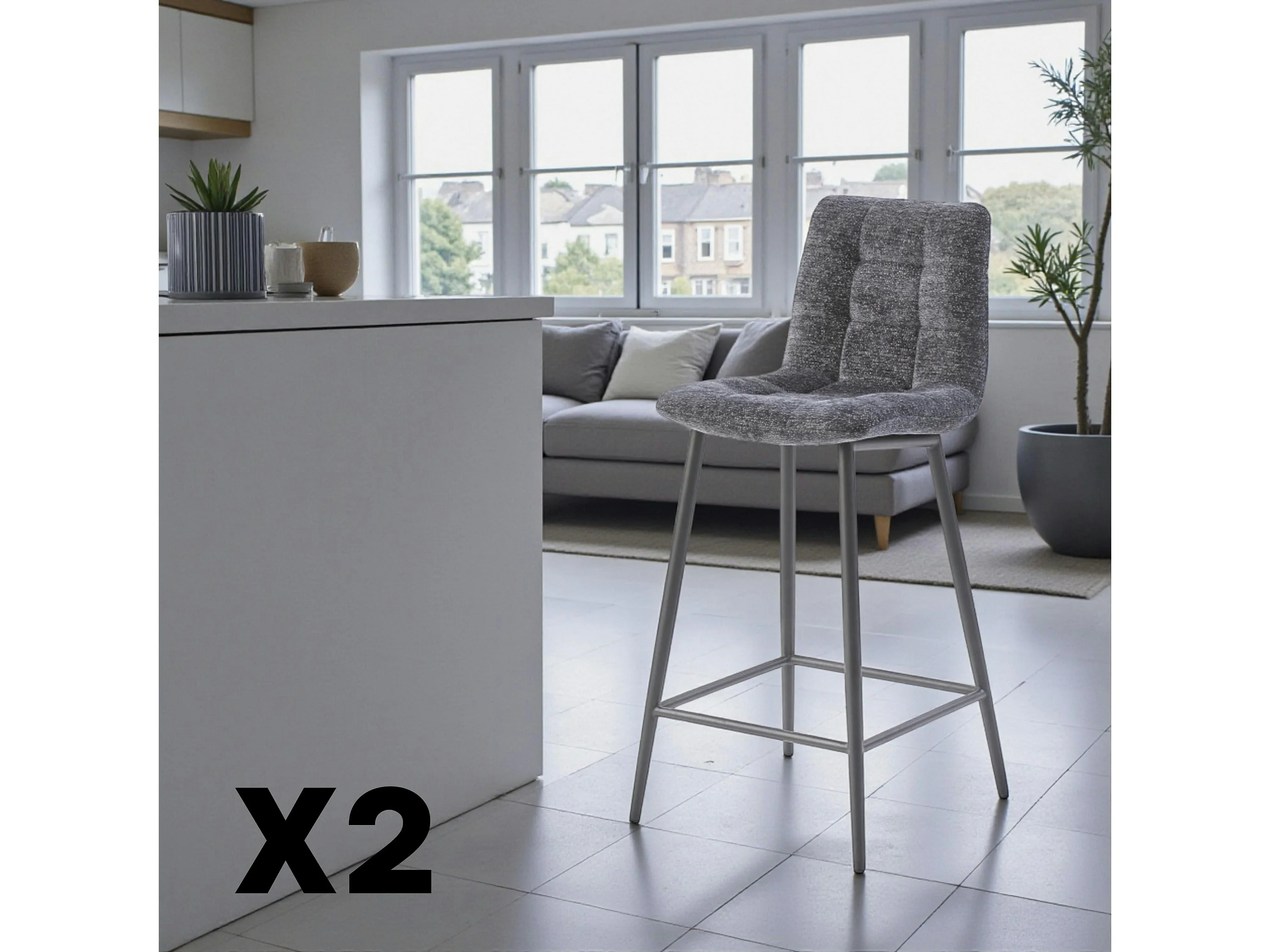 Chaise de bar anthracite motif damier (lot de 2) LOMBARDIE