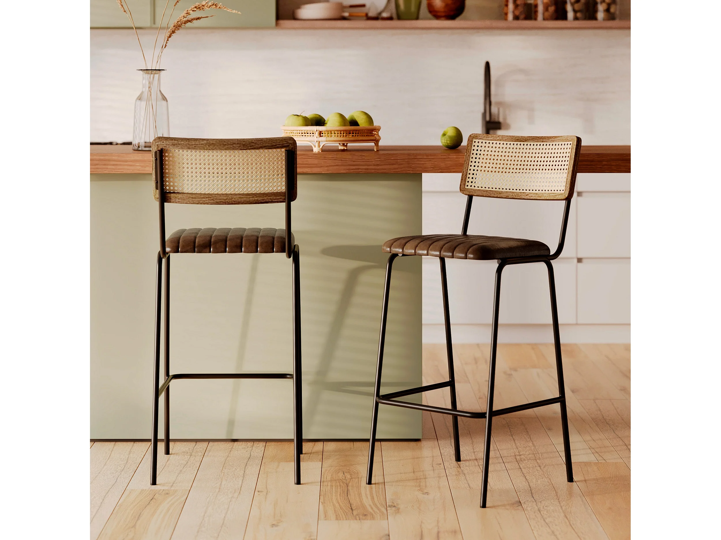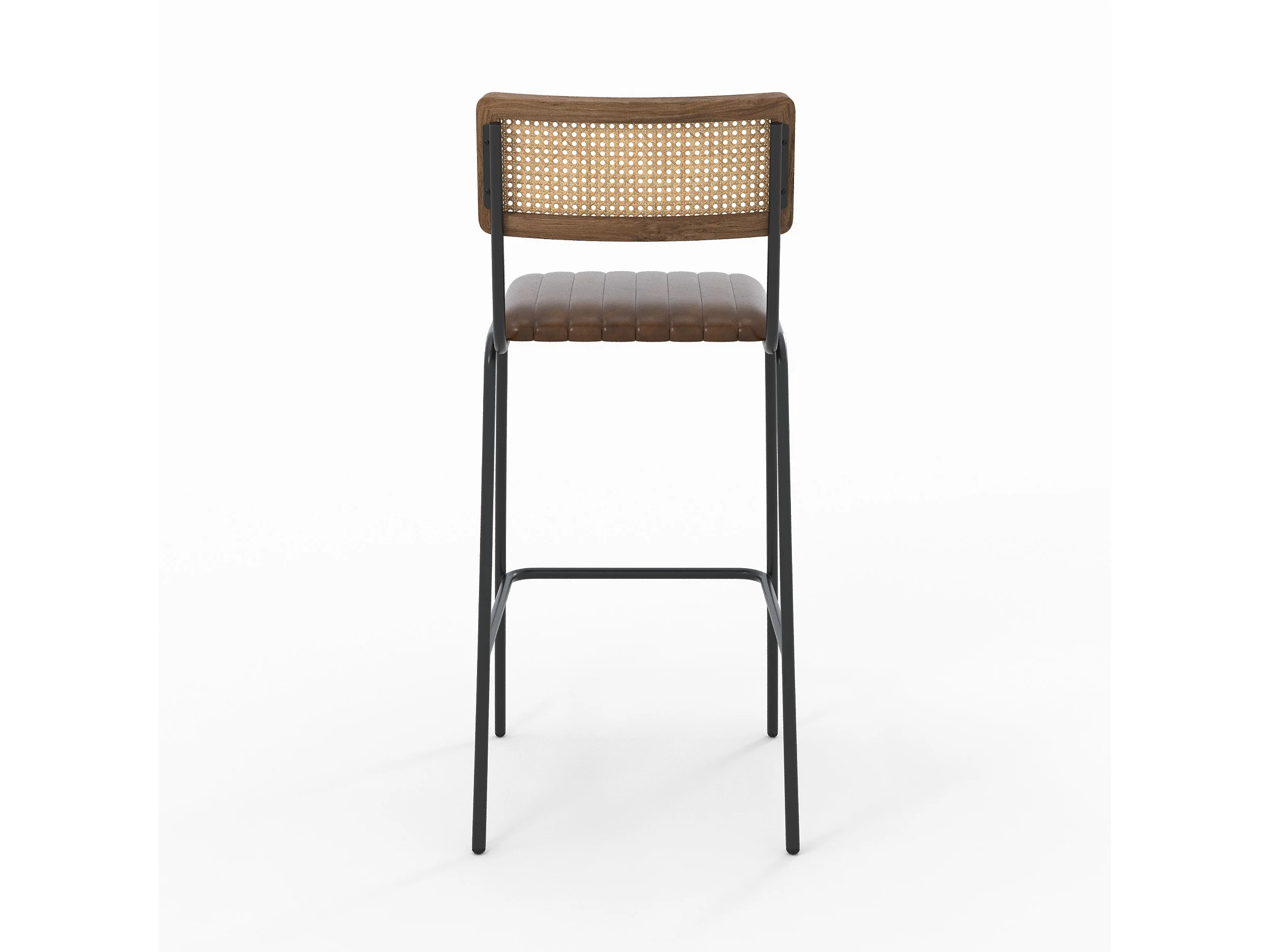 Lot de 2 chaises de bar 76 cm en cannage et cuir marron - Arsène