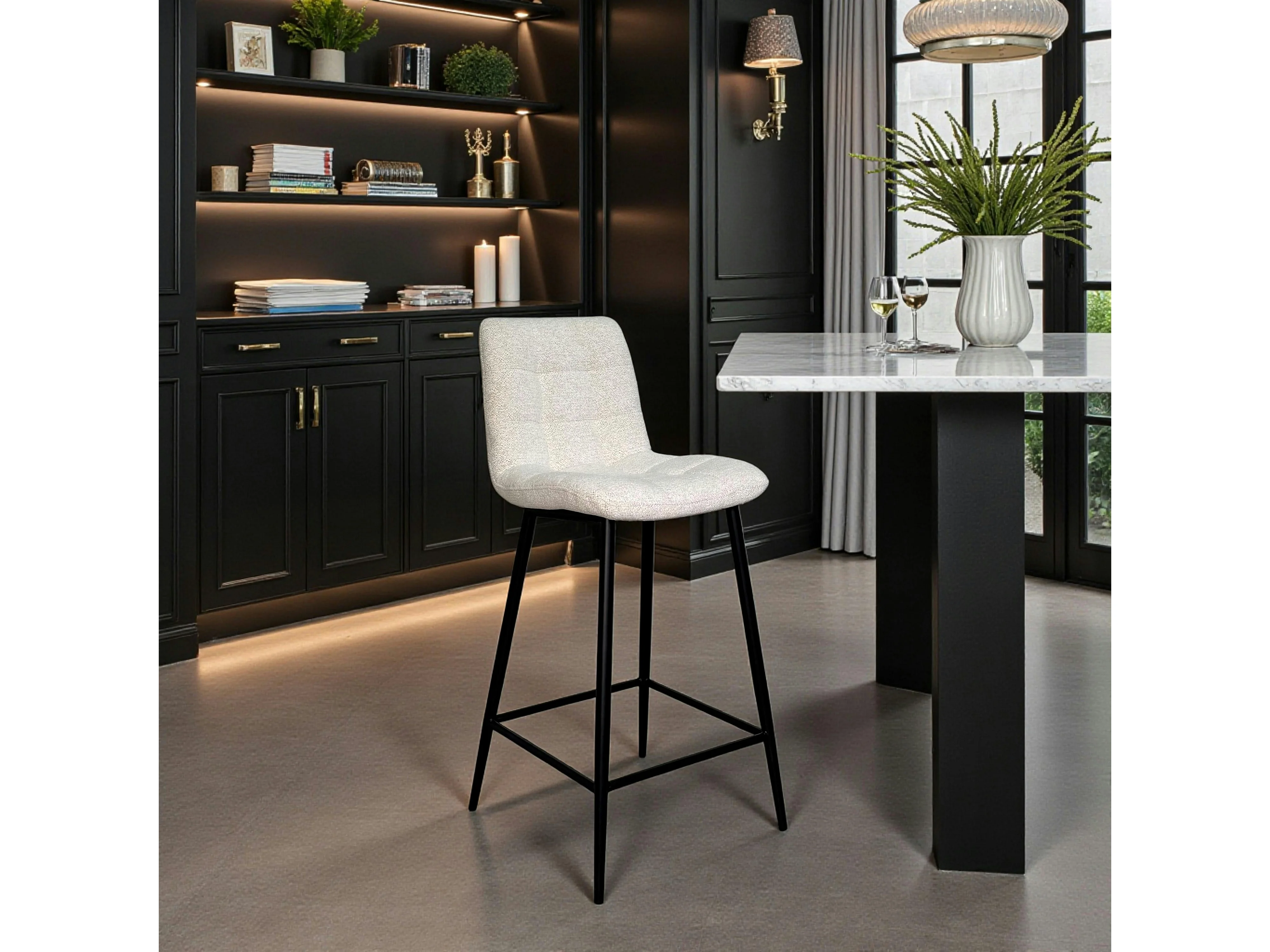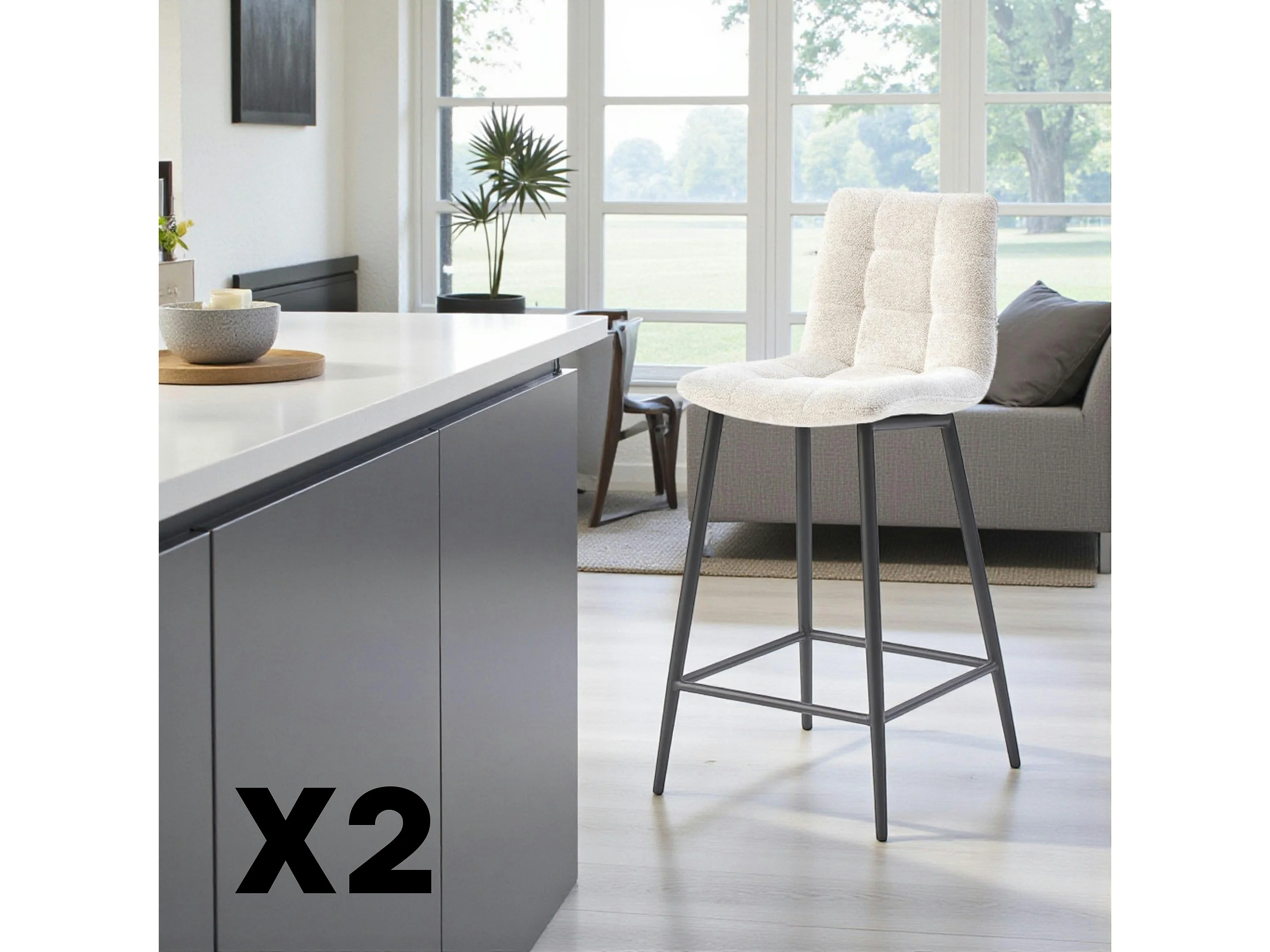 Chaise de bar beige motif damier (lot de 2) LOMBARDIE