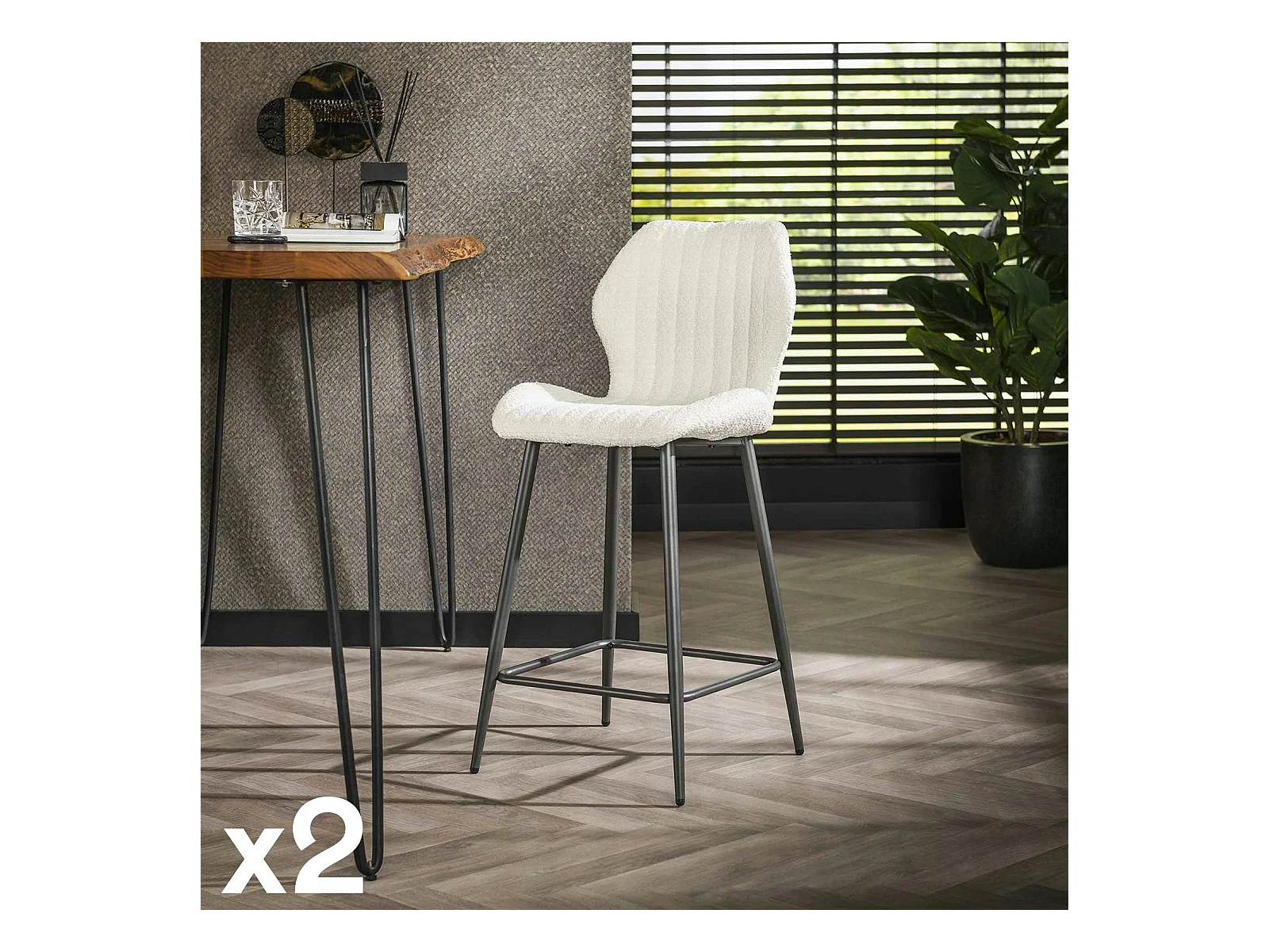 Chaise de bar blanche en bouclette avec repose-pieds (lot de 2) GALWAY