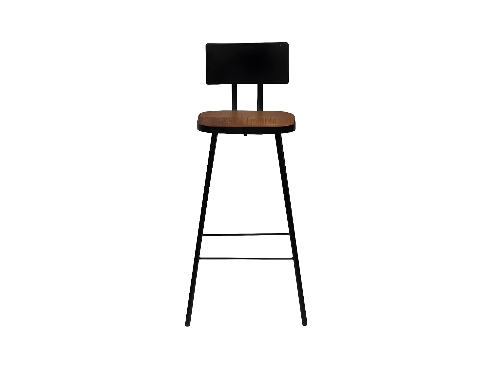 Chaise de bar bois massif foncé et métal noir Iar - Lot de 2