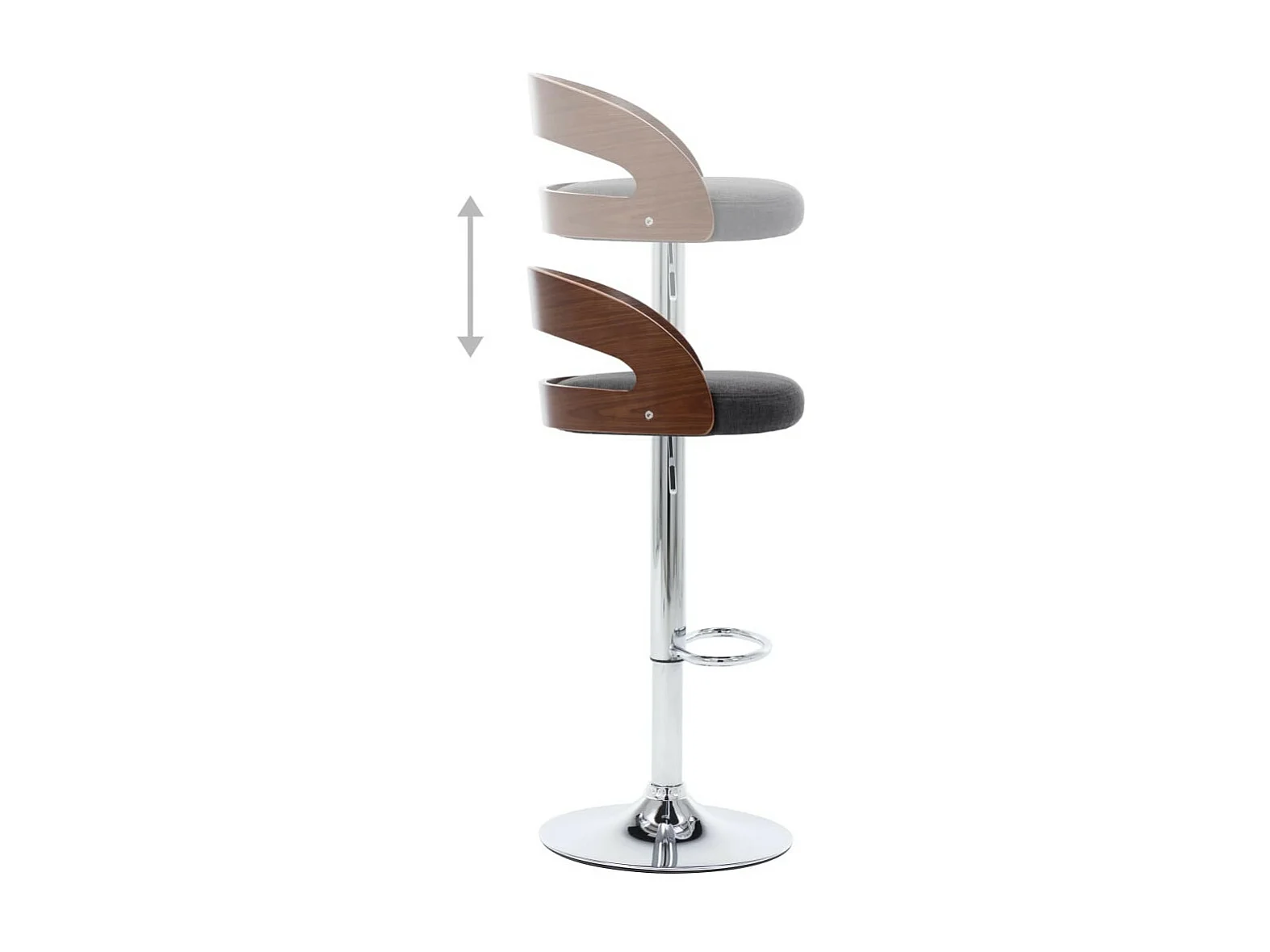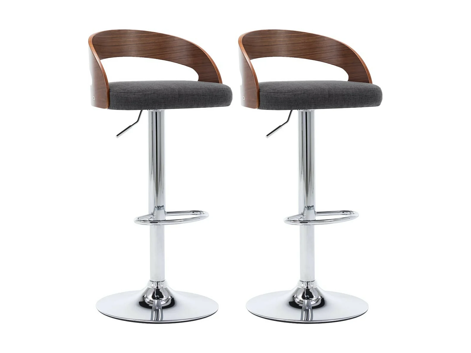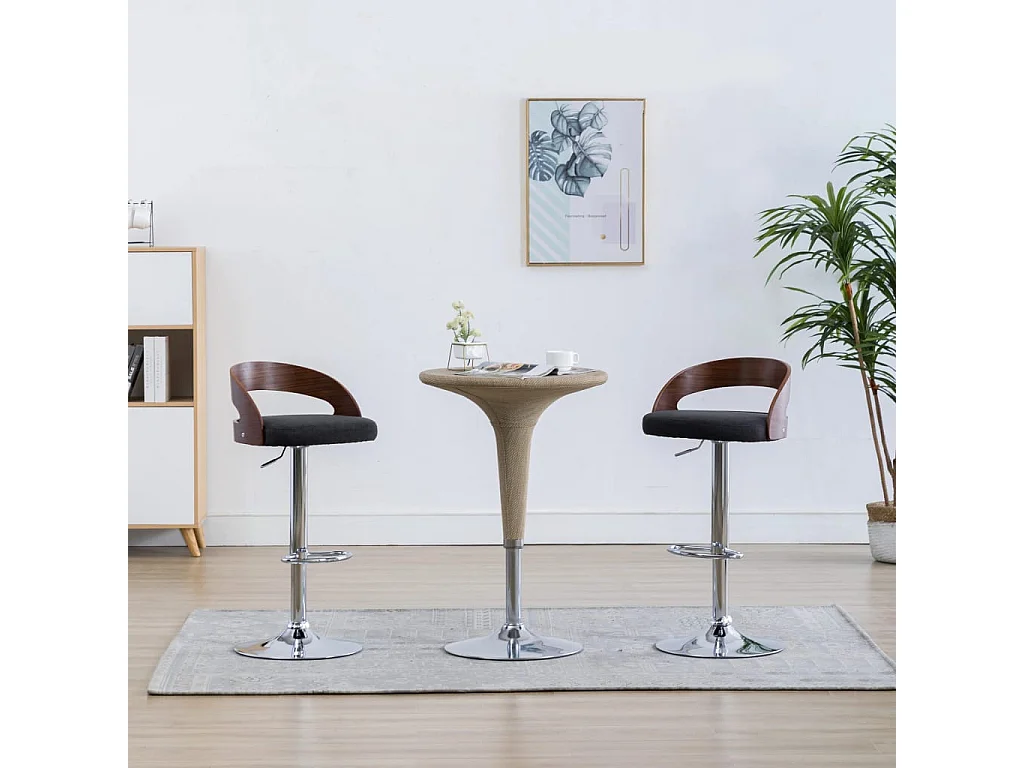 Chaise de bar bois noyer et tissu gris foncé Karmi - Lot de 2