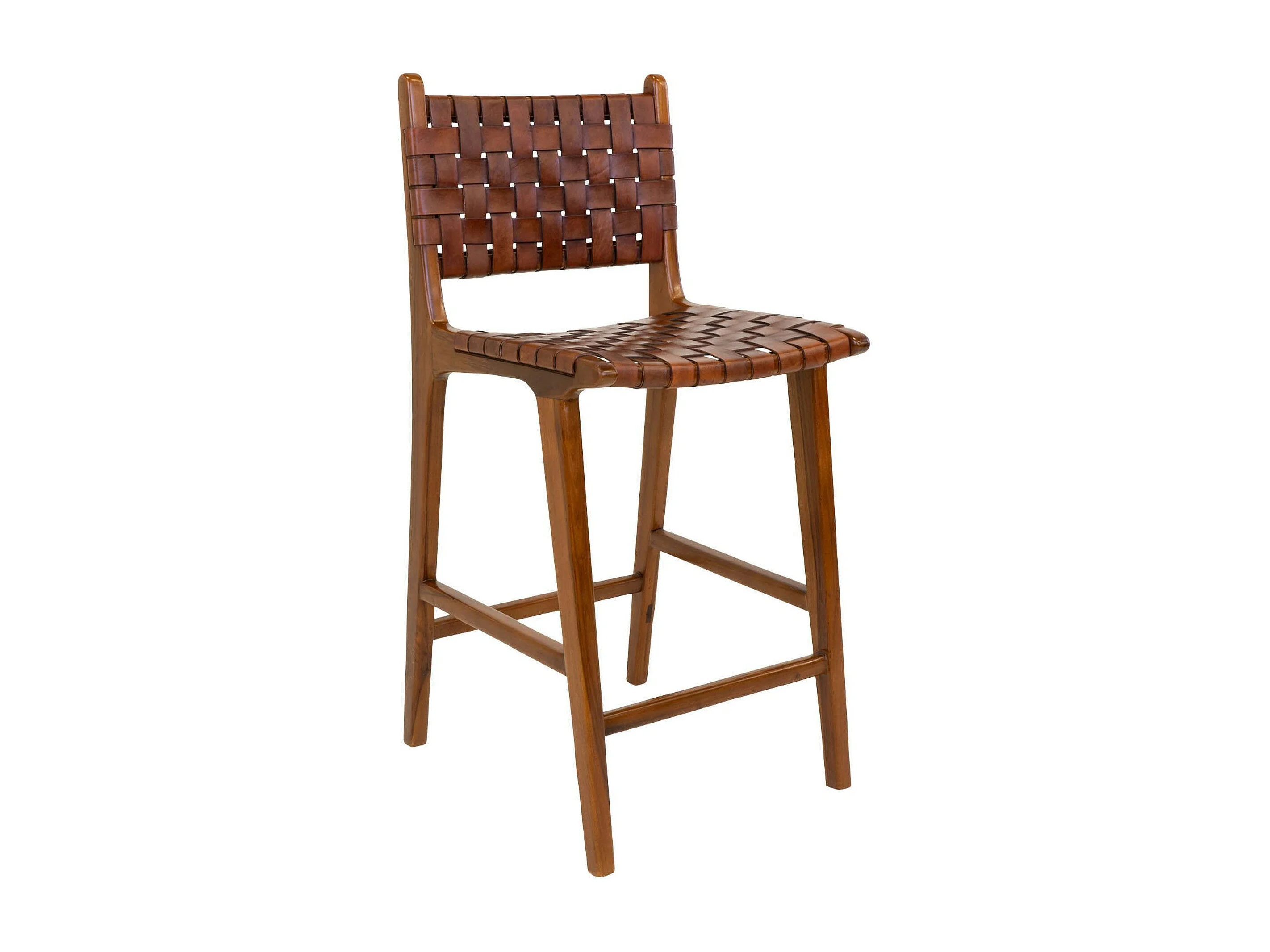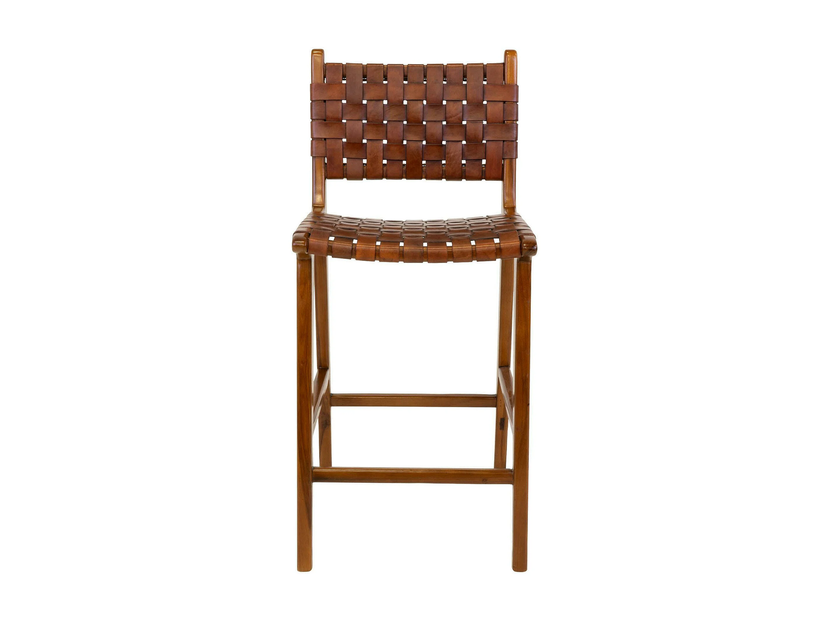 Chaise de bar en bois de teck et cuir marron MENDOZA