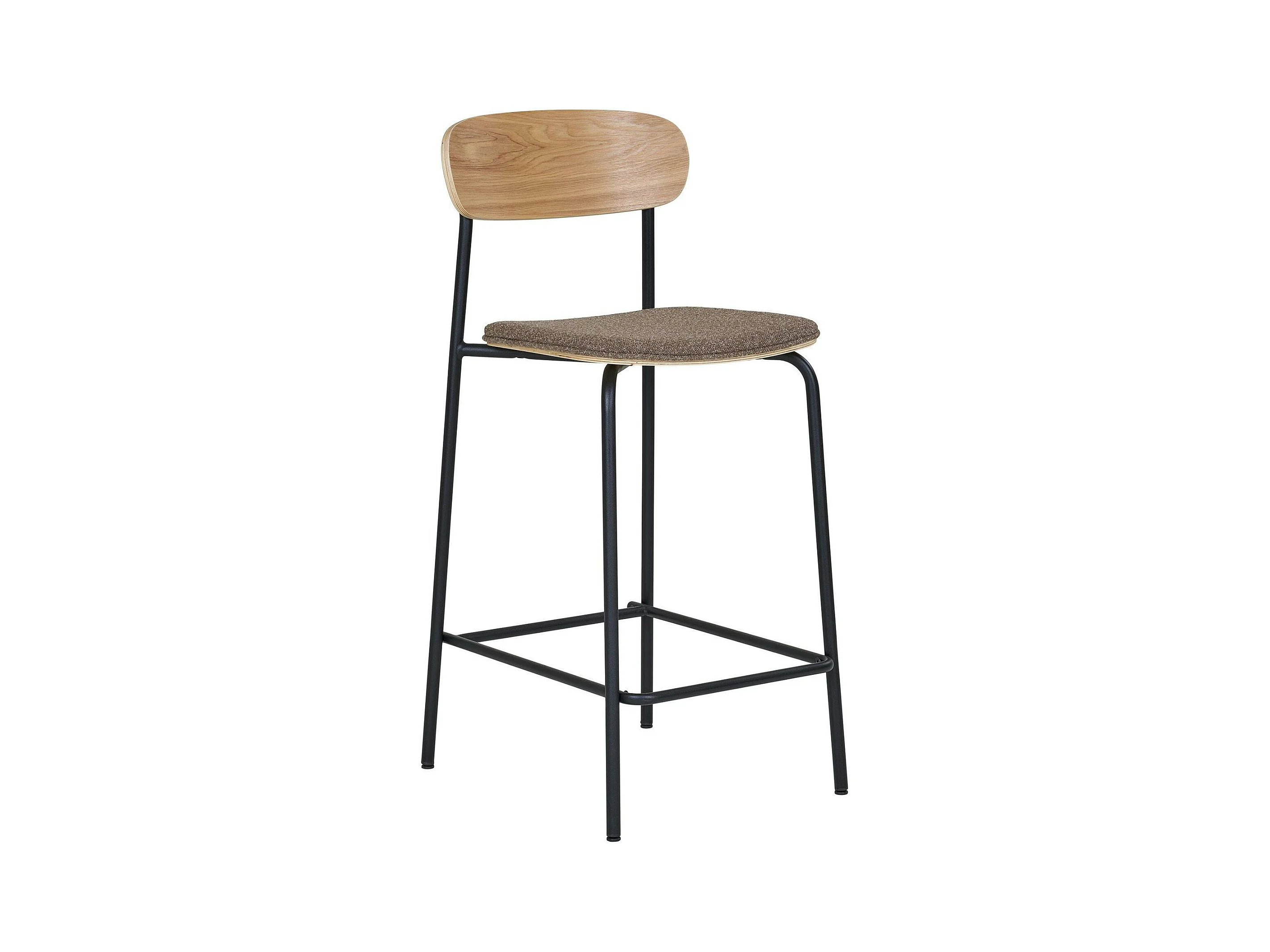 Chaise de bar en bois style écolier avec assise tissu marron (lot de 2) BERLIN