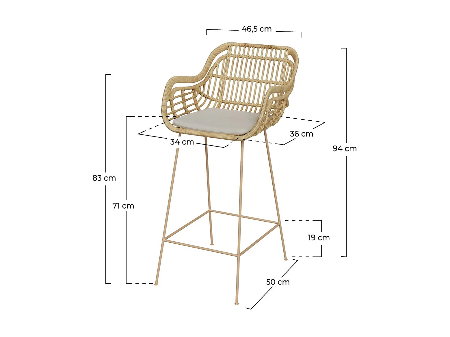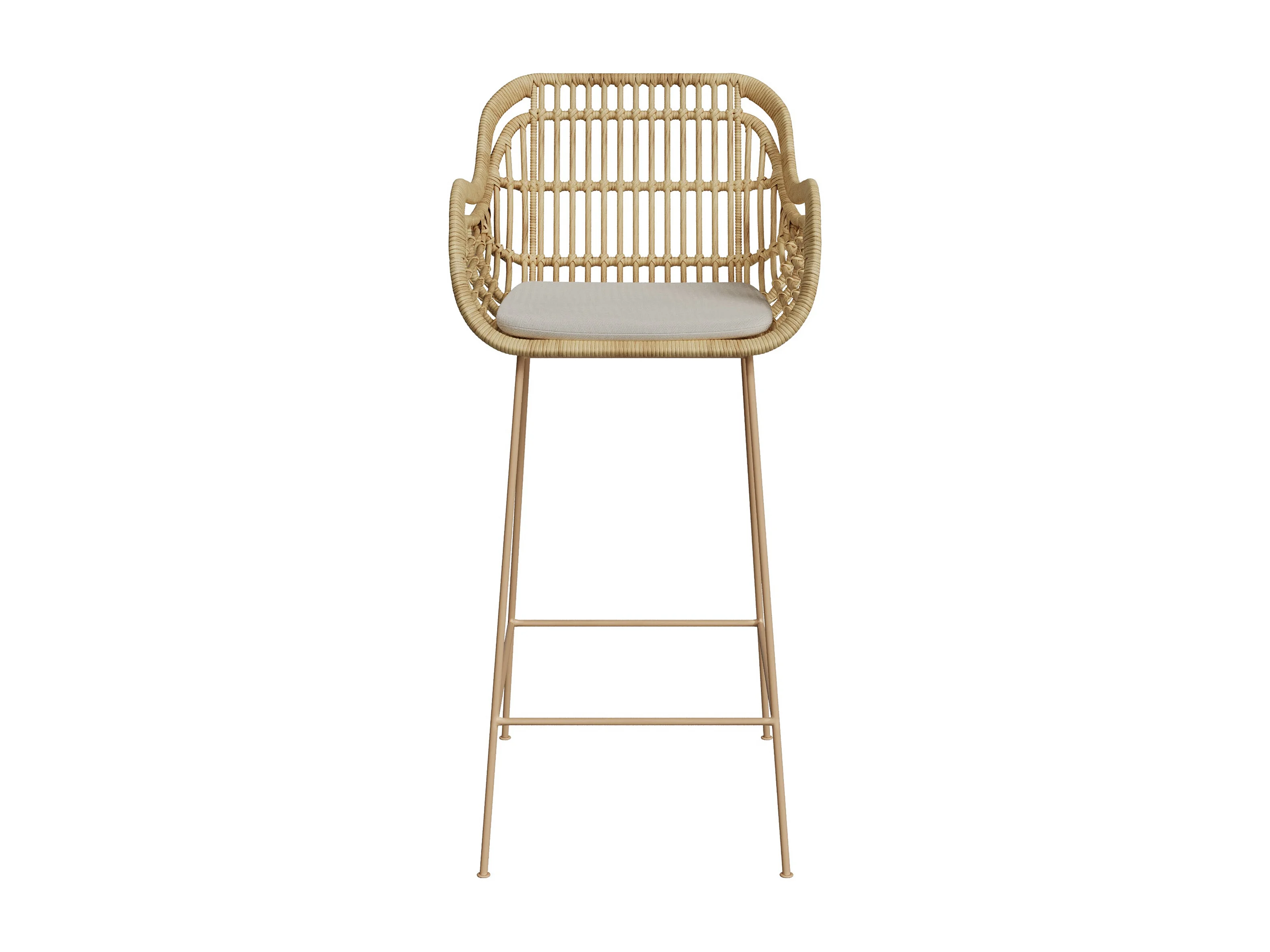 Chaise de bar en rotin, coussin en tissu et pieds en métal beige 71 cm - Chiloé