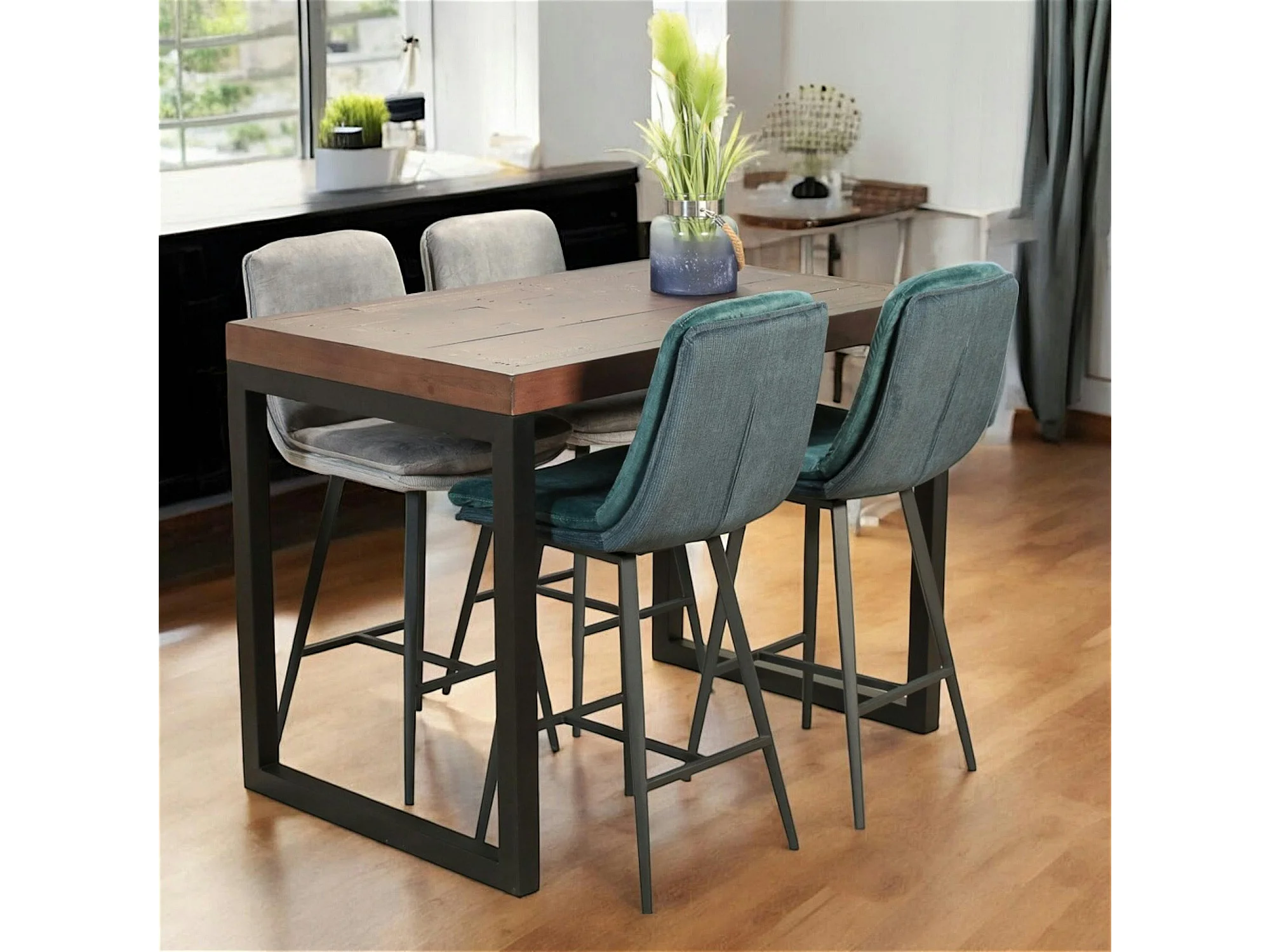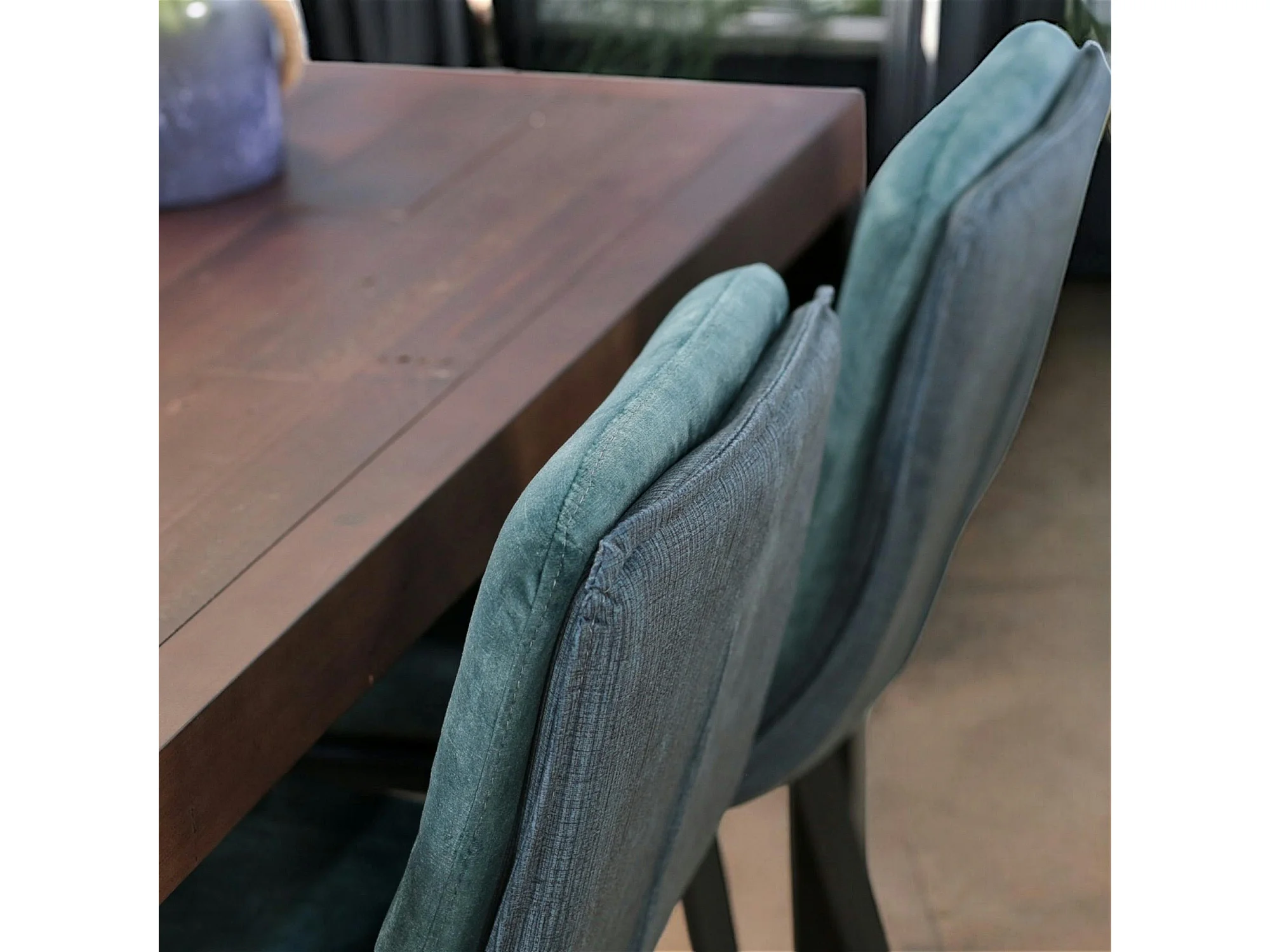 Chaise de bar en velours bleu à double coussinage (lot de 2) OKA