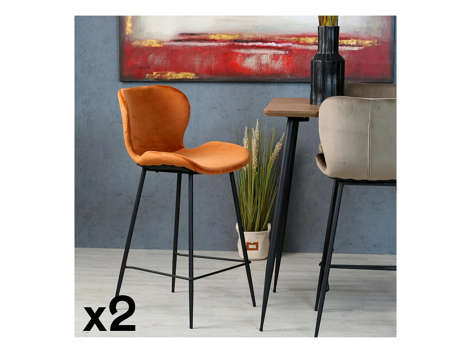 Chaise de bar en velours brique style moderne (lot de 2) MELBOURNE