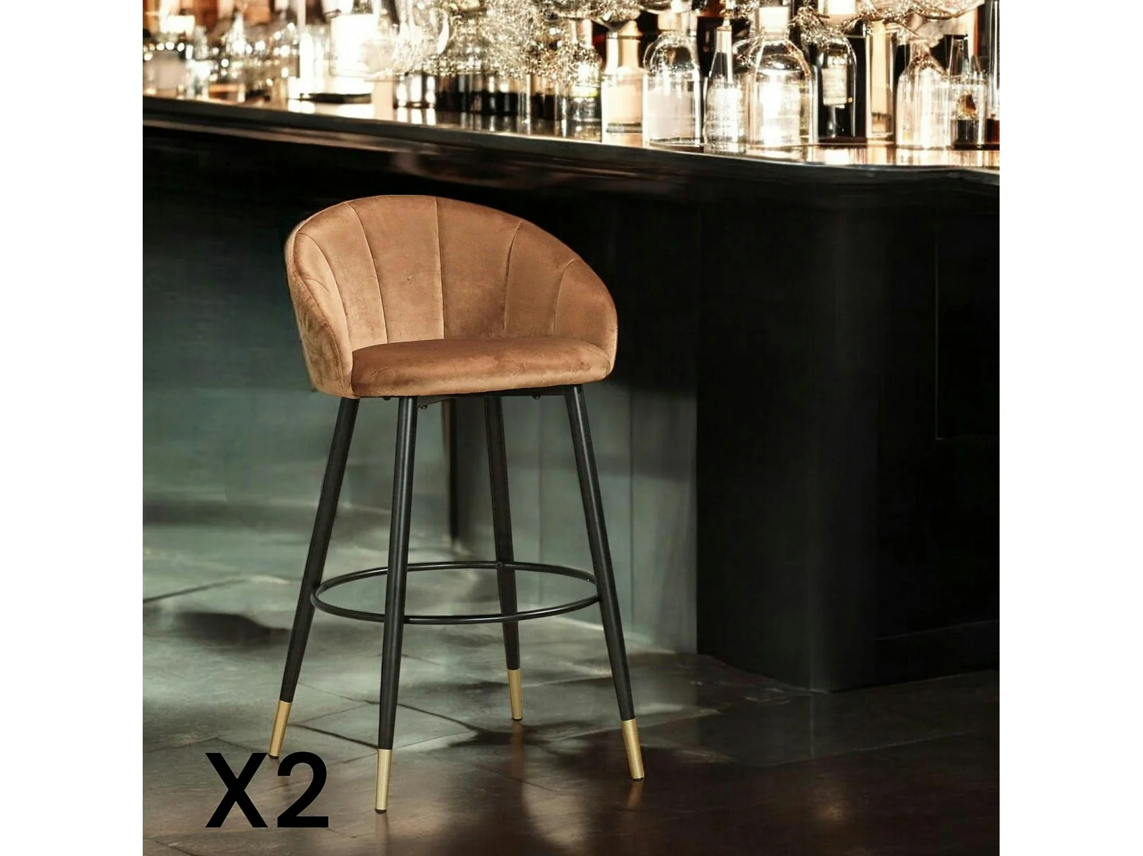 Chaise de bar en velours doré forme coquillage (lot de 2) HAWAI