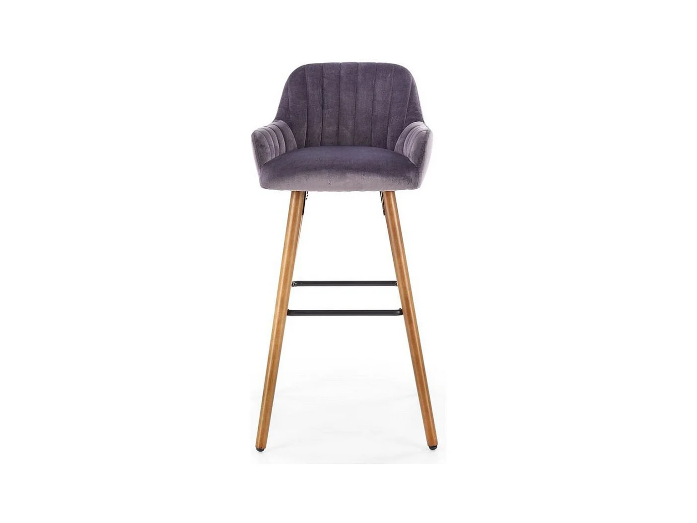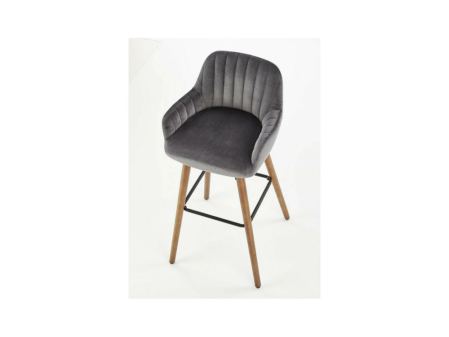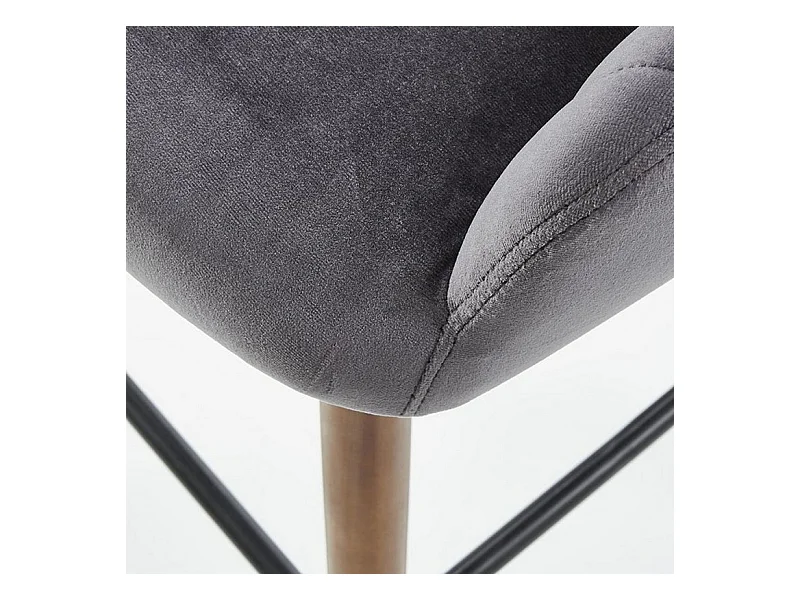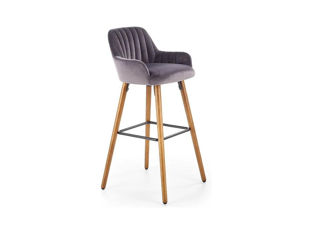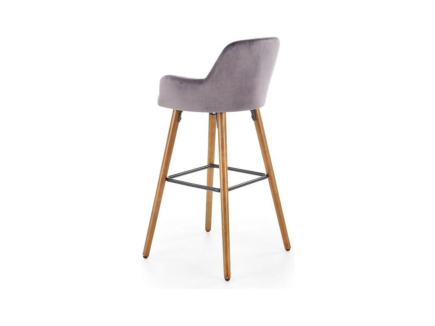 Chaise de bar en velours gris avec pieds en bois massif CLEAN