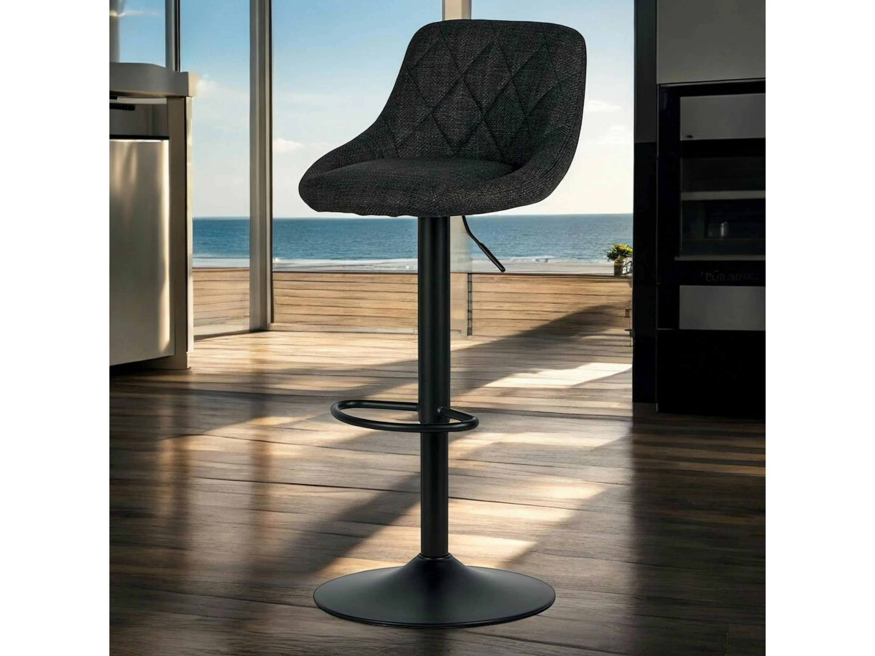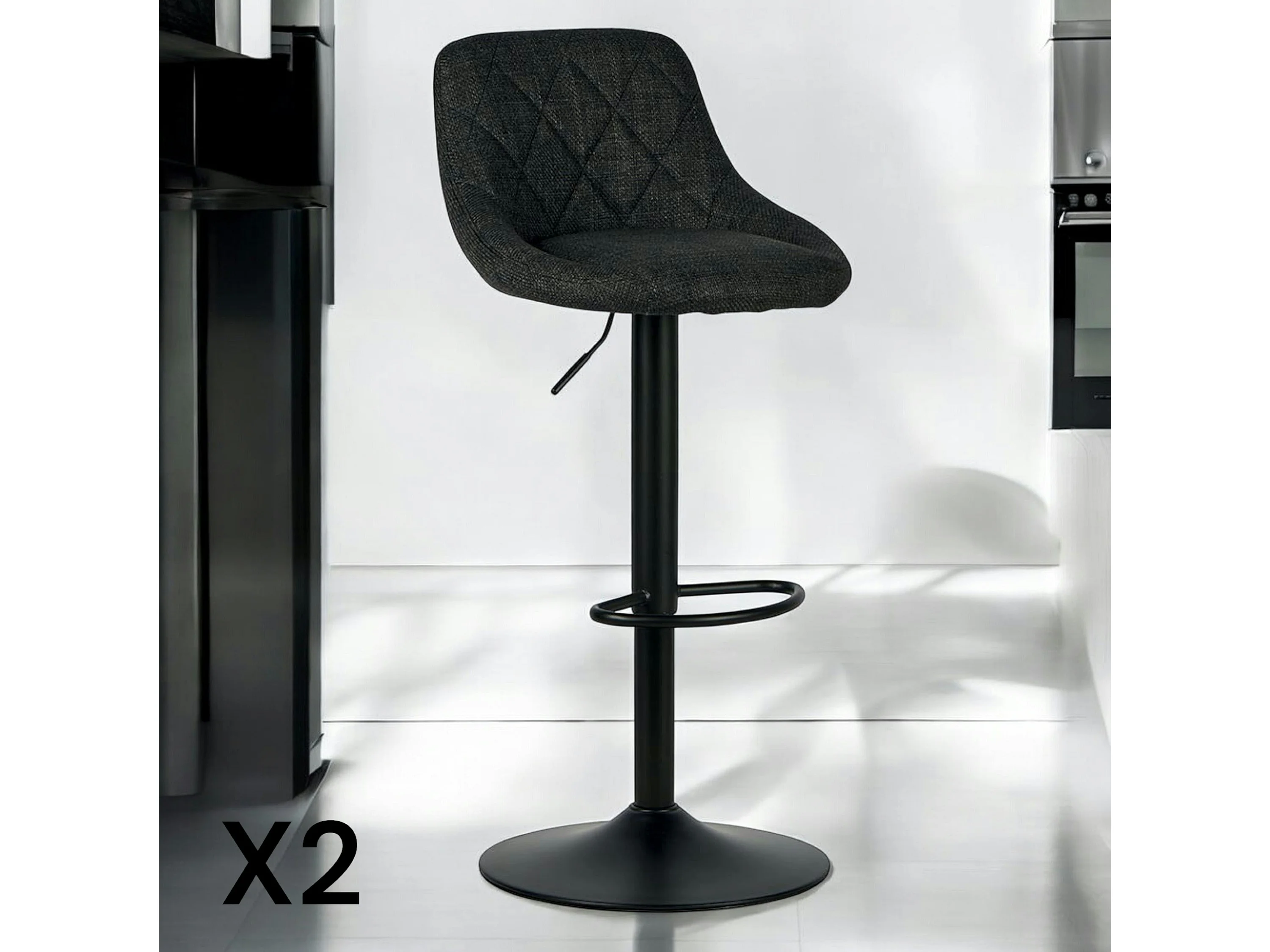 Chaise de bar hauteur réglable tissu noir (lot de 2) MALMOE