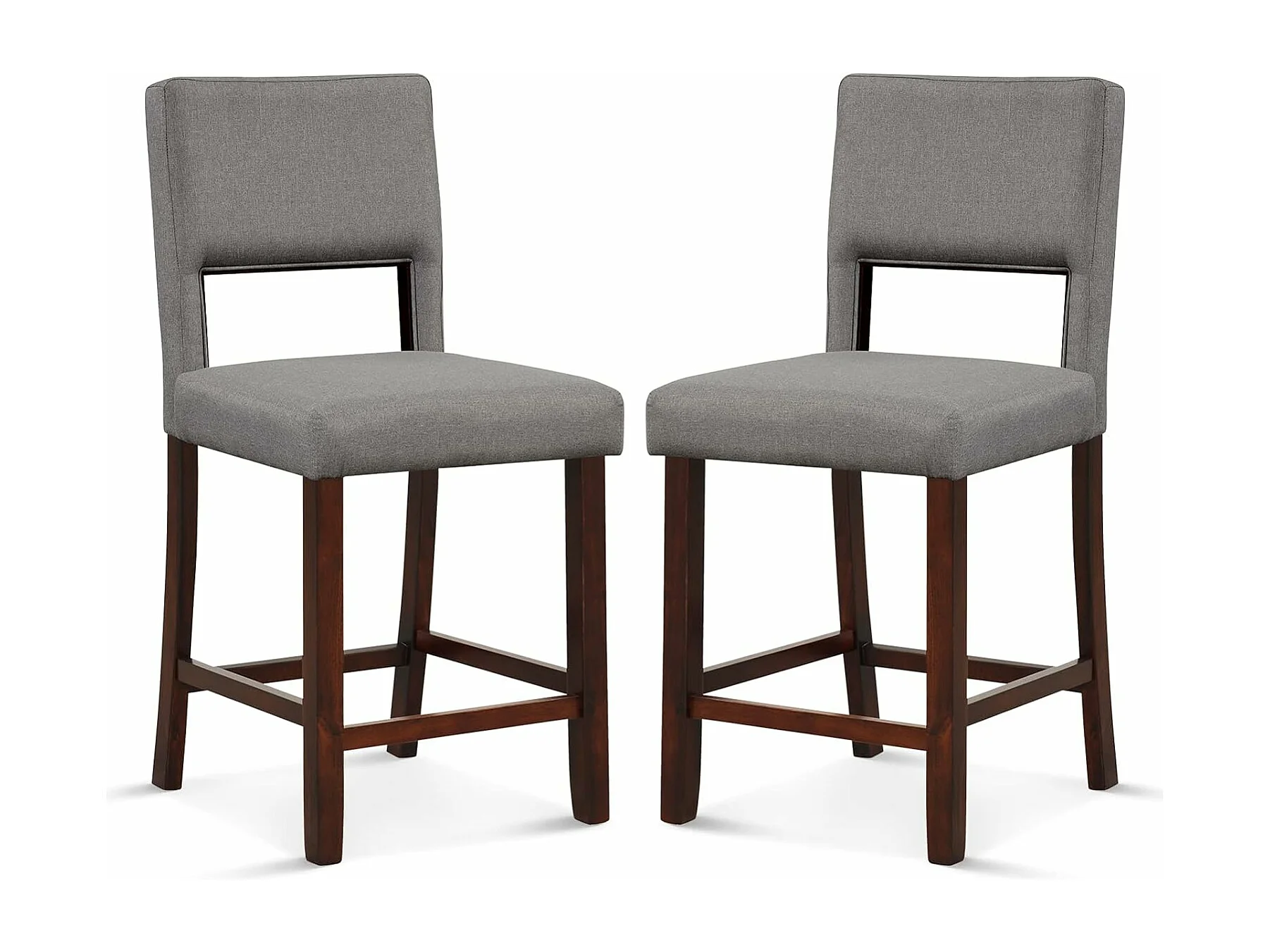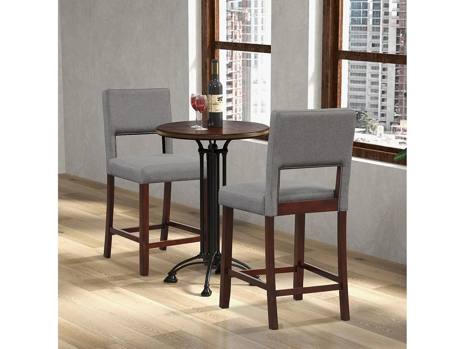 Chaise de Bar Lot de 2, Chaise Haute Bar avec Dossier et Repose-Pieds, Surface en Lin, Tabouret de Bar Rembourré Hauteur d’Assise 62 cm, Gris