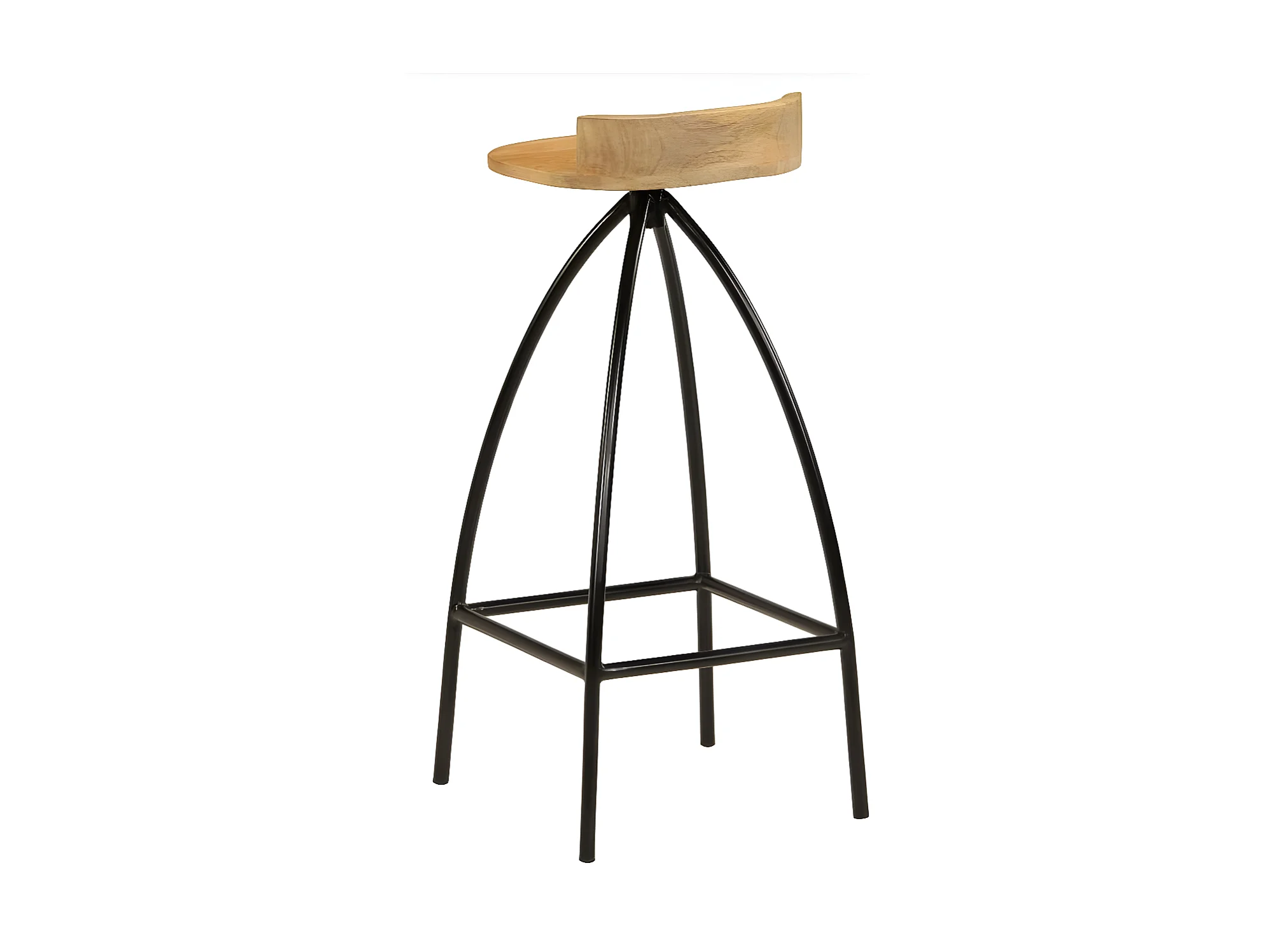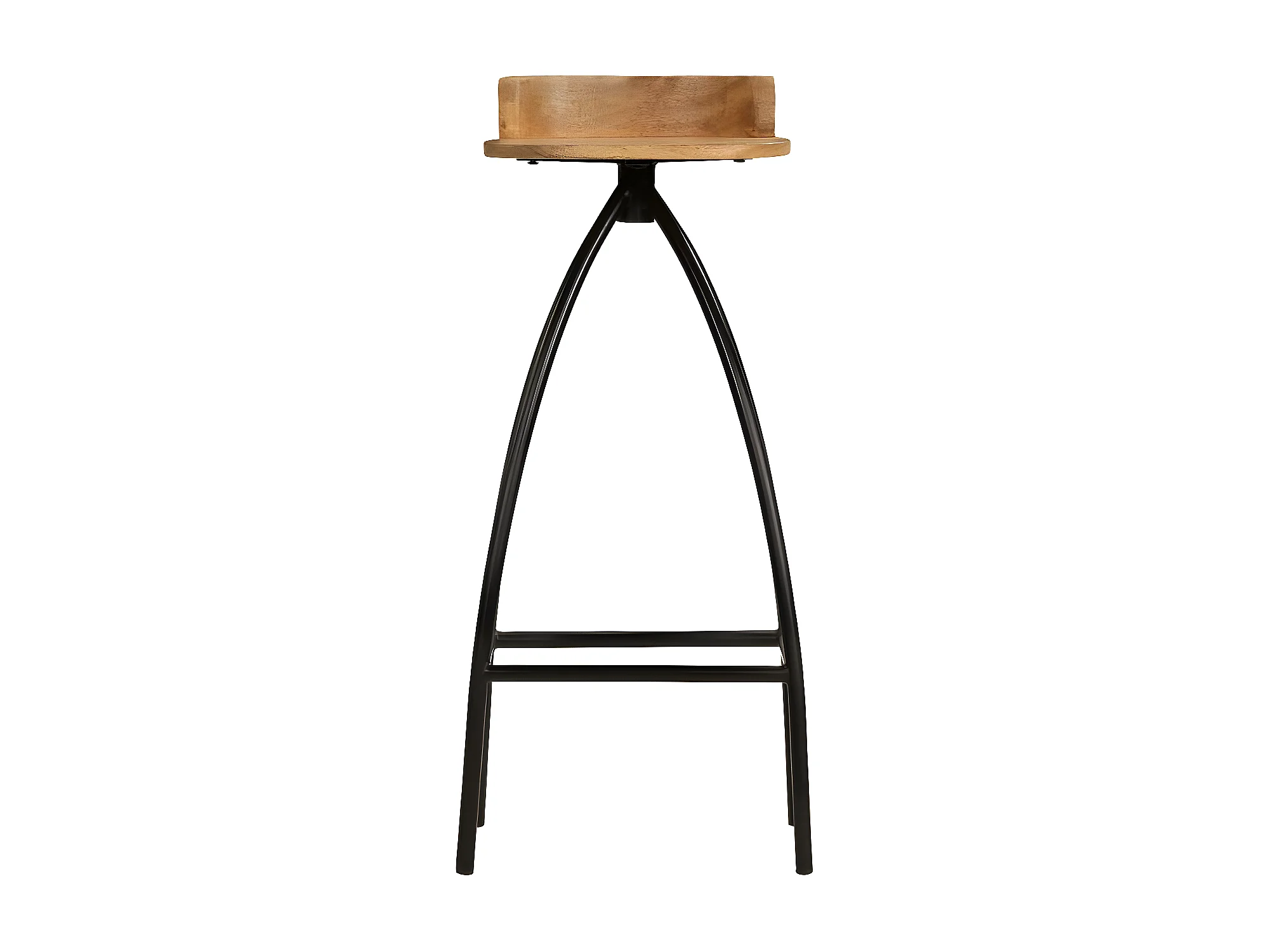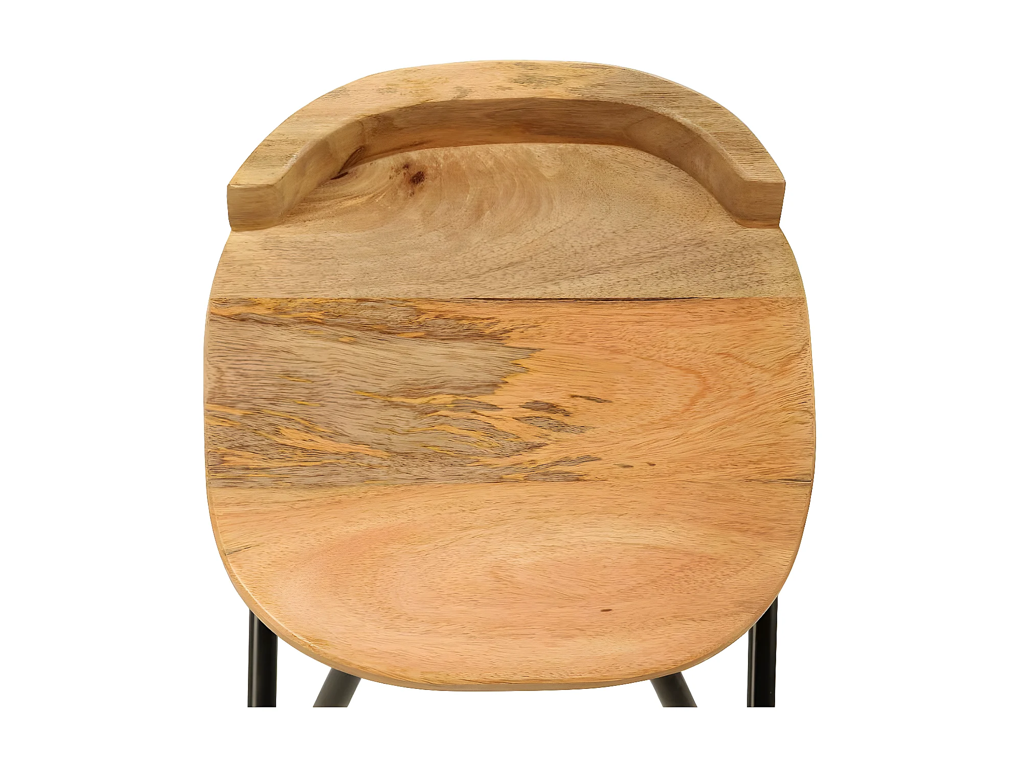 chaise de bar manguier massif clair et pieds métal noir Ive - Lot de 2