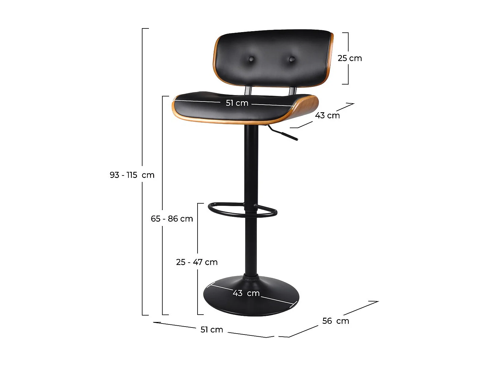 Tabouret de bar noir hauteur ajustable