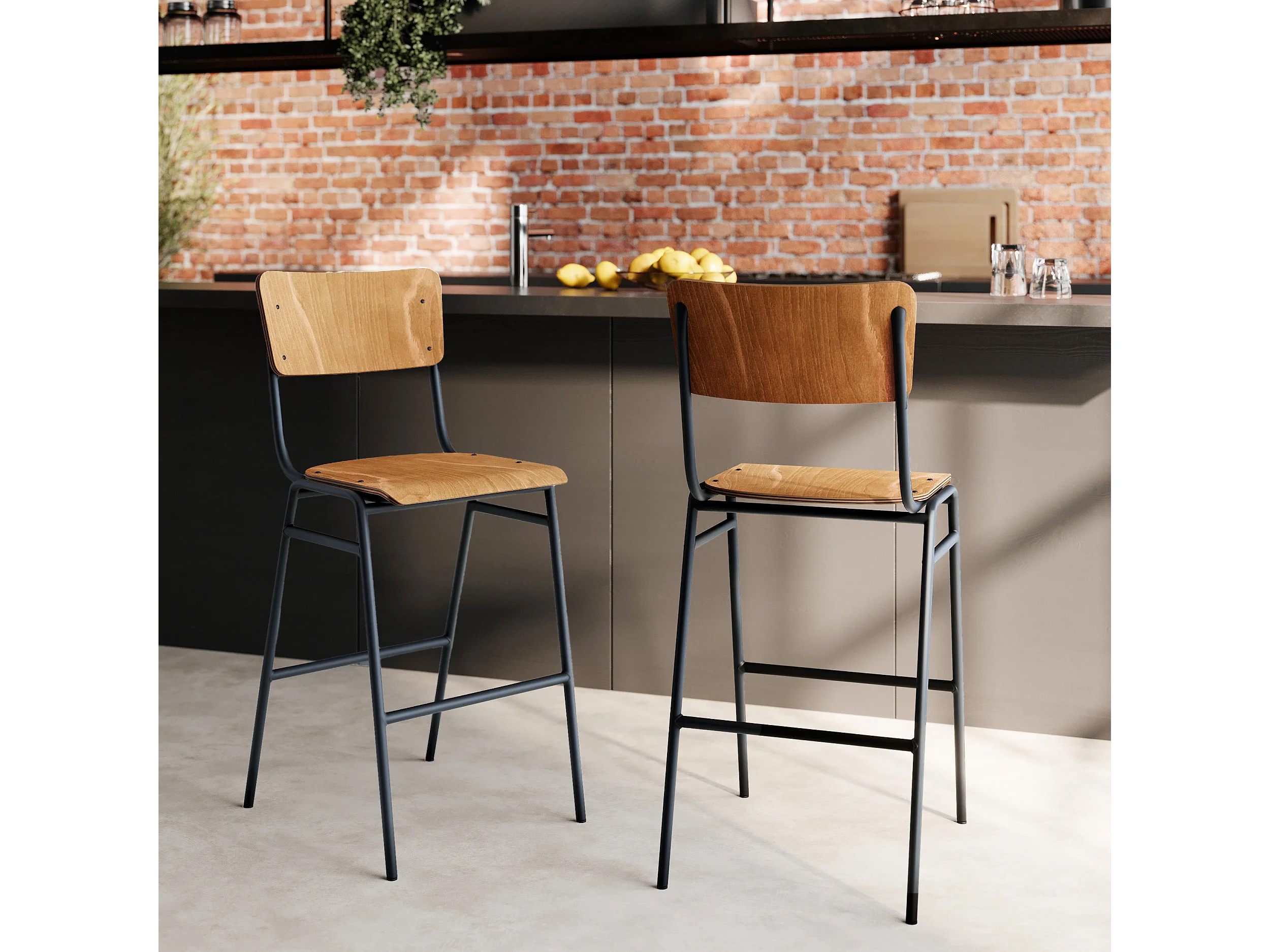 Lot de 2 chaises pour îlot central 66 cm en bois foncé - Clem