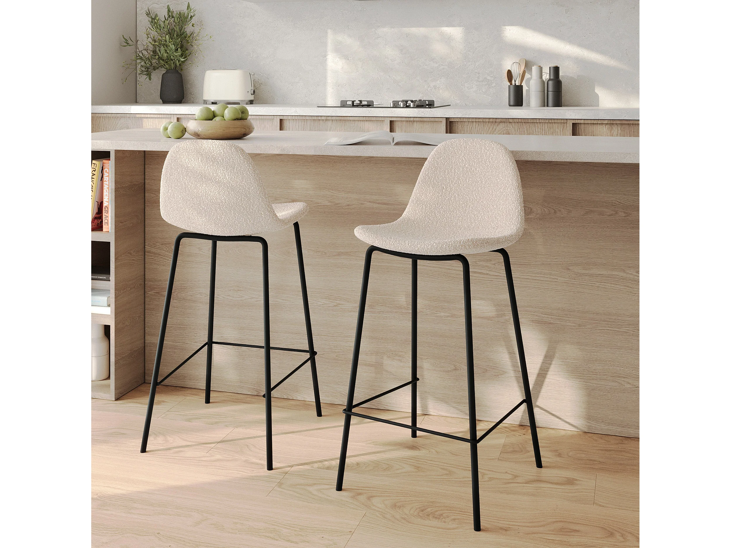 Lot de 2 chaises pour îlot central 65.5 cm en tissu bouclette beige - Henrik