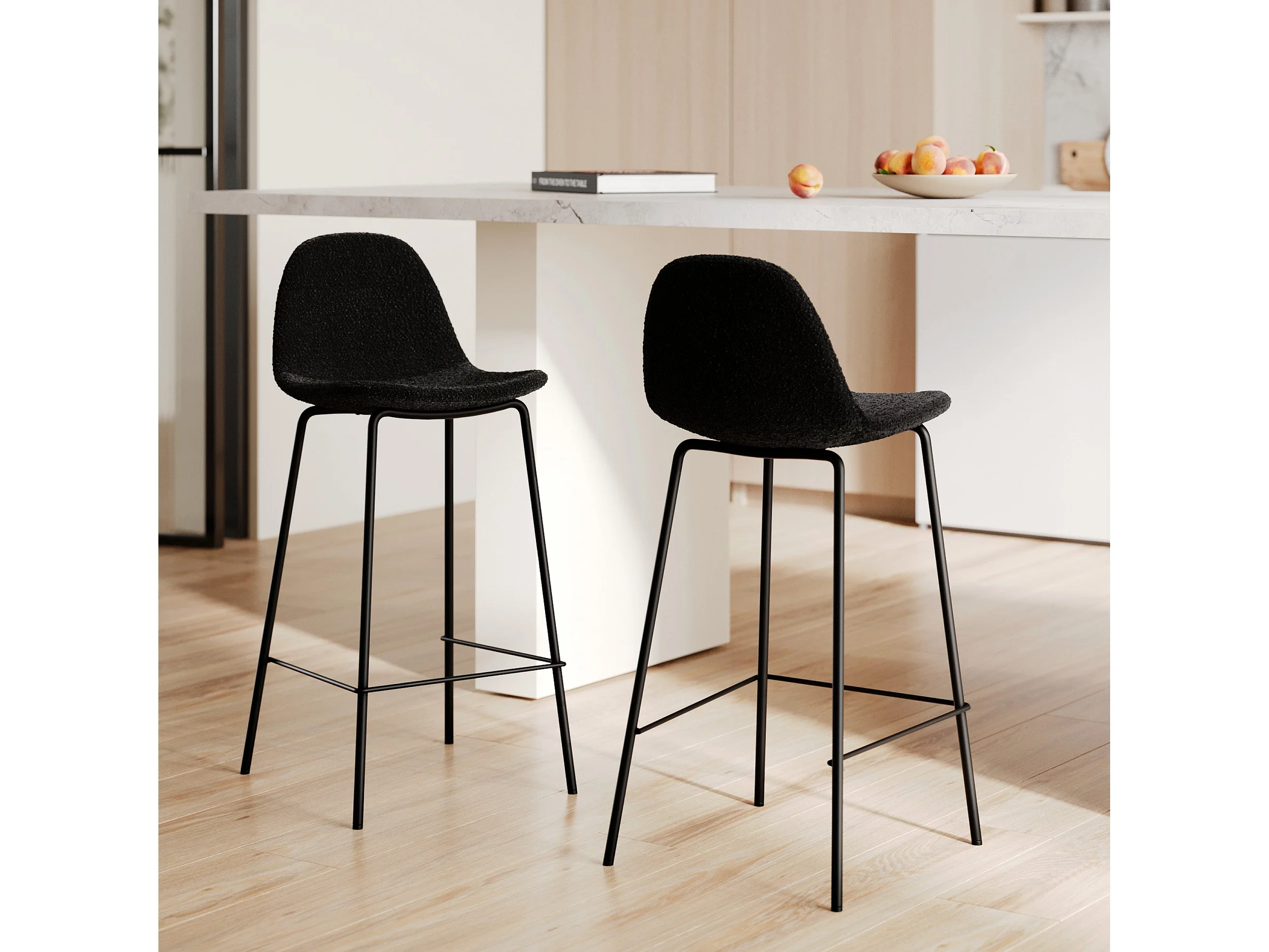 Lot de 2 chaises pour îlot central 65.5 cm en tissu bouclette noir - Henrik