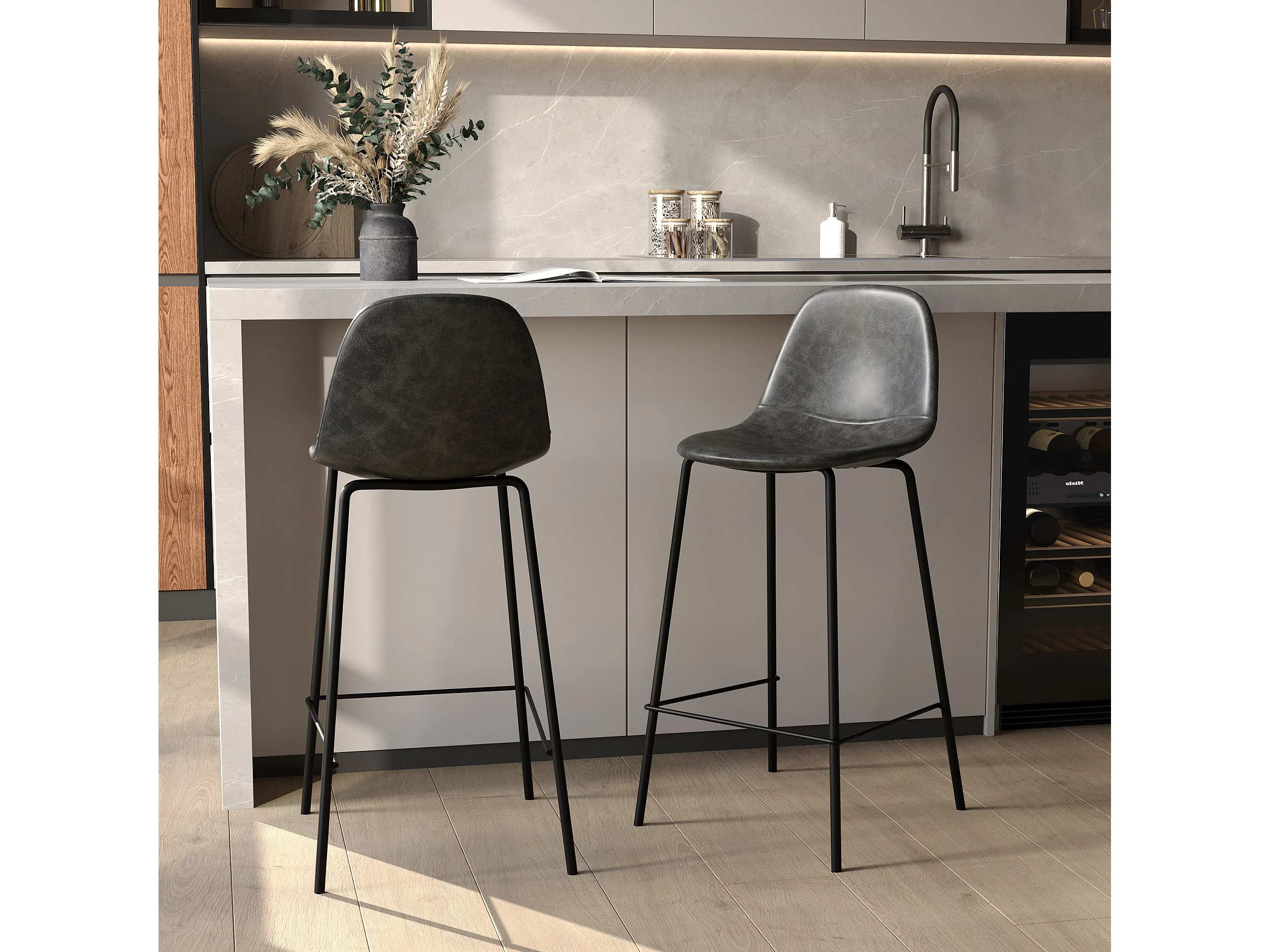 Lot de 2 chaises pour îlot central 65 cm en cuir synthétique gris - Henrik