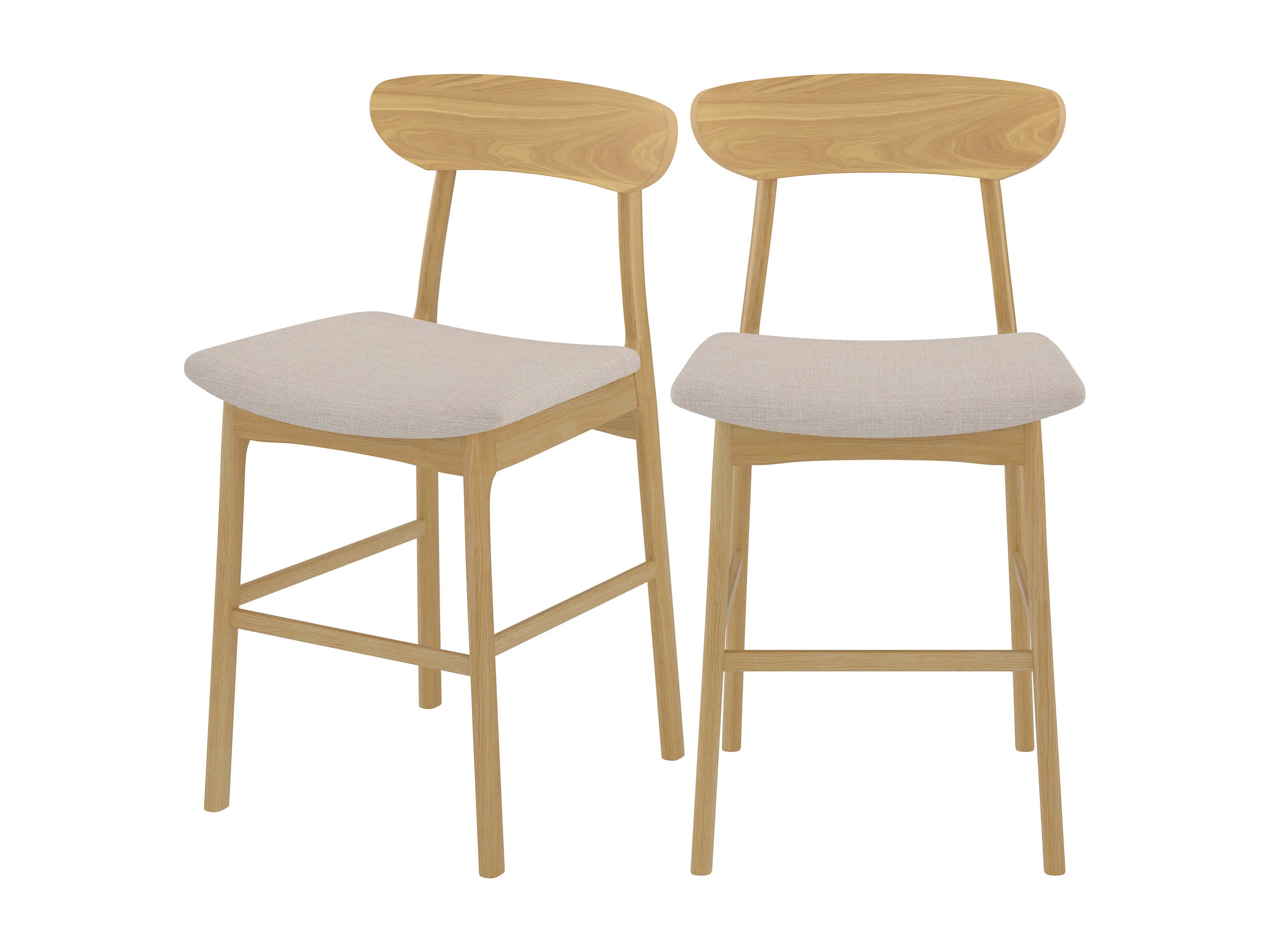 Lot de 2 chaises pour îlot central 66 cm en tissu beige et bois - Lana