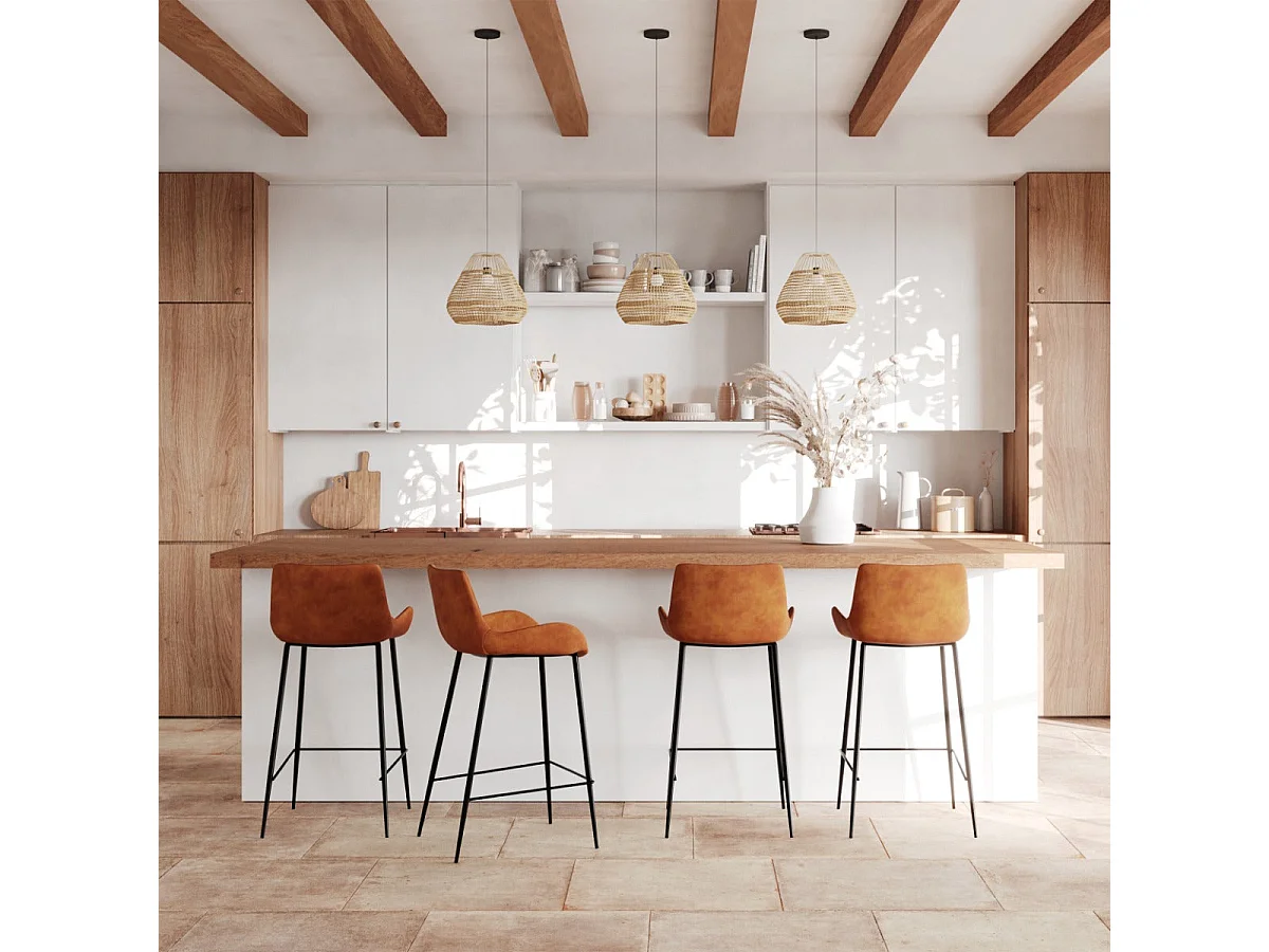 Lot de 2 chaises pour îlot central 65 cm en cuir synthétique camel - Pirata