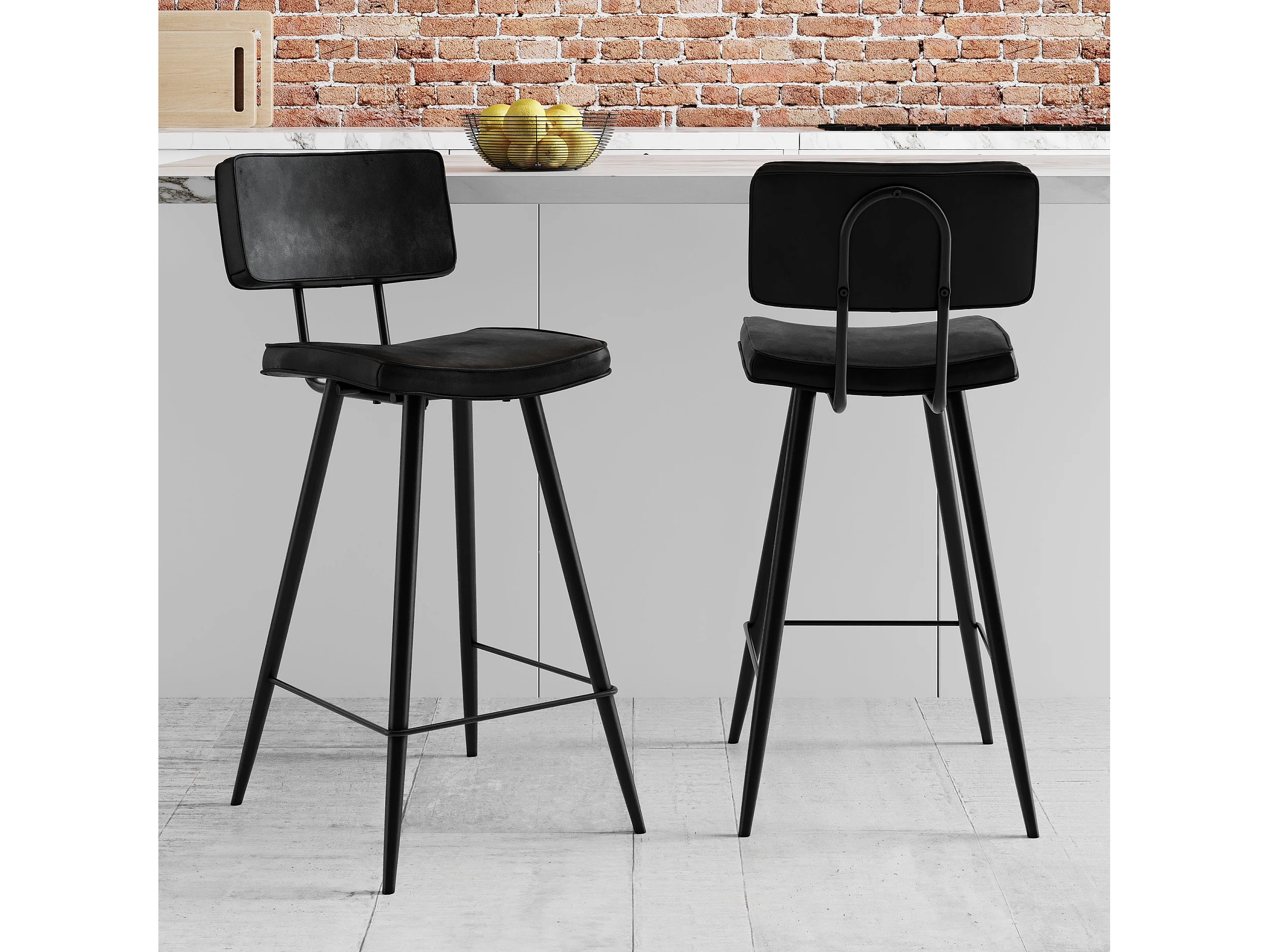 Lot de 2 chaises de bar mi-hauteur 66 cm en cuir synthétique gris/noir - Texas