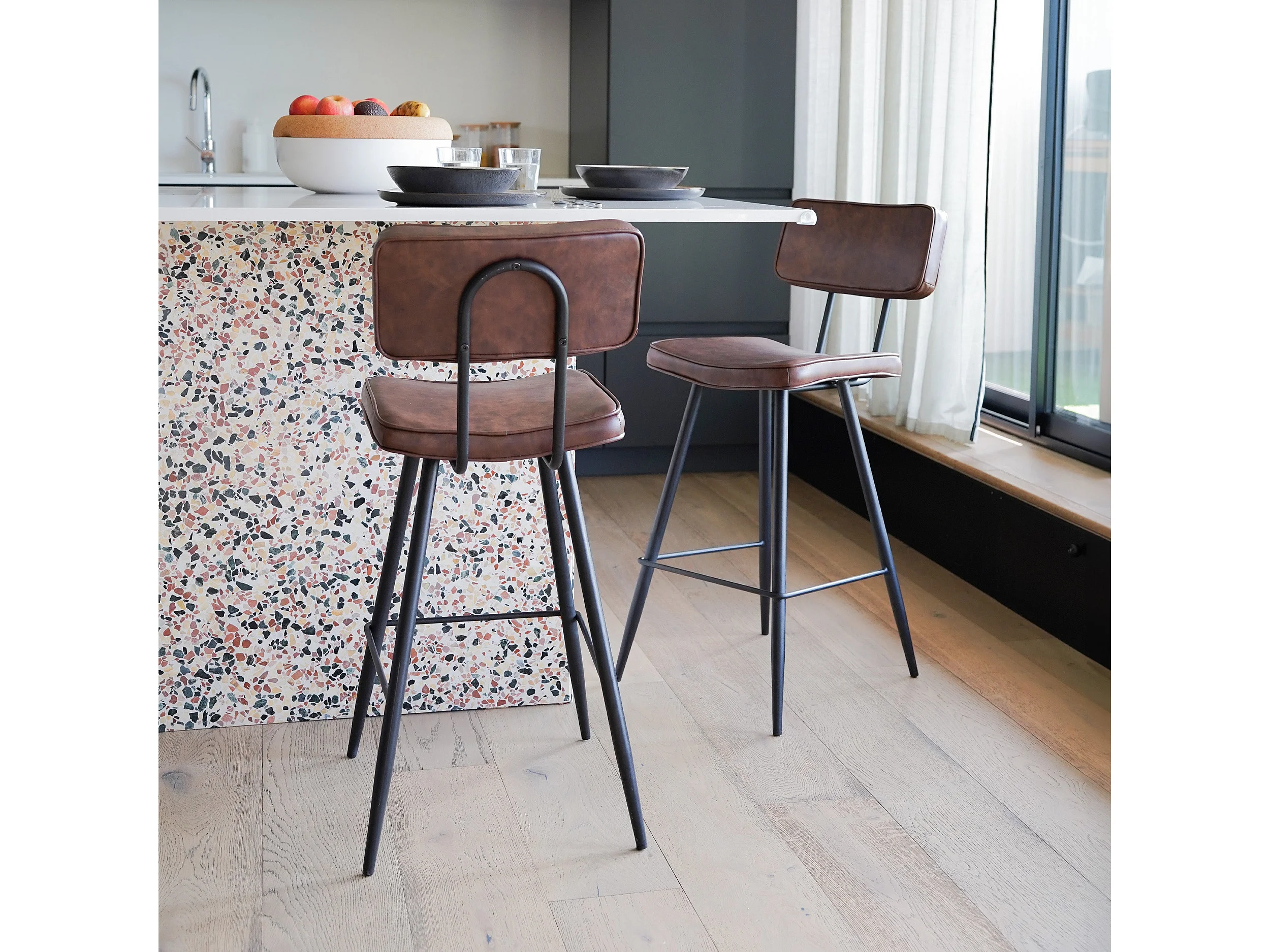 Lot de 2 chaises de bar mi-hauteur 66 cm en cuir synthétique marron - Texas