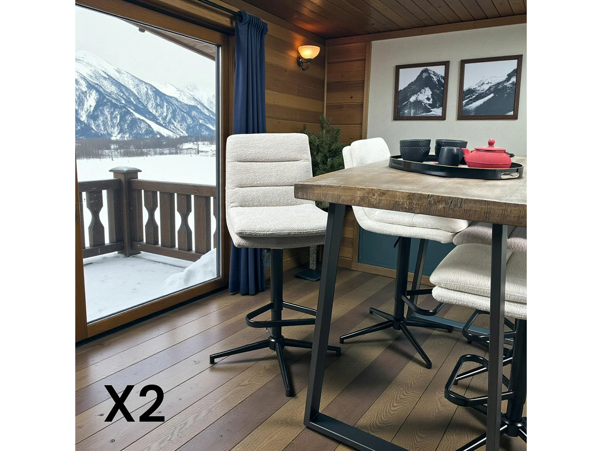 Chaise de bar tissu bouclettes sable réglable en hauteur (lot de 2) PALERME
