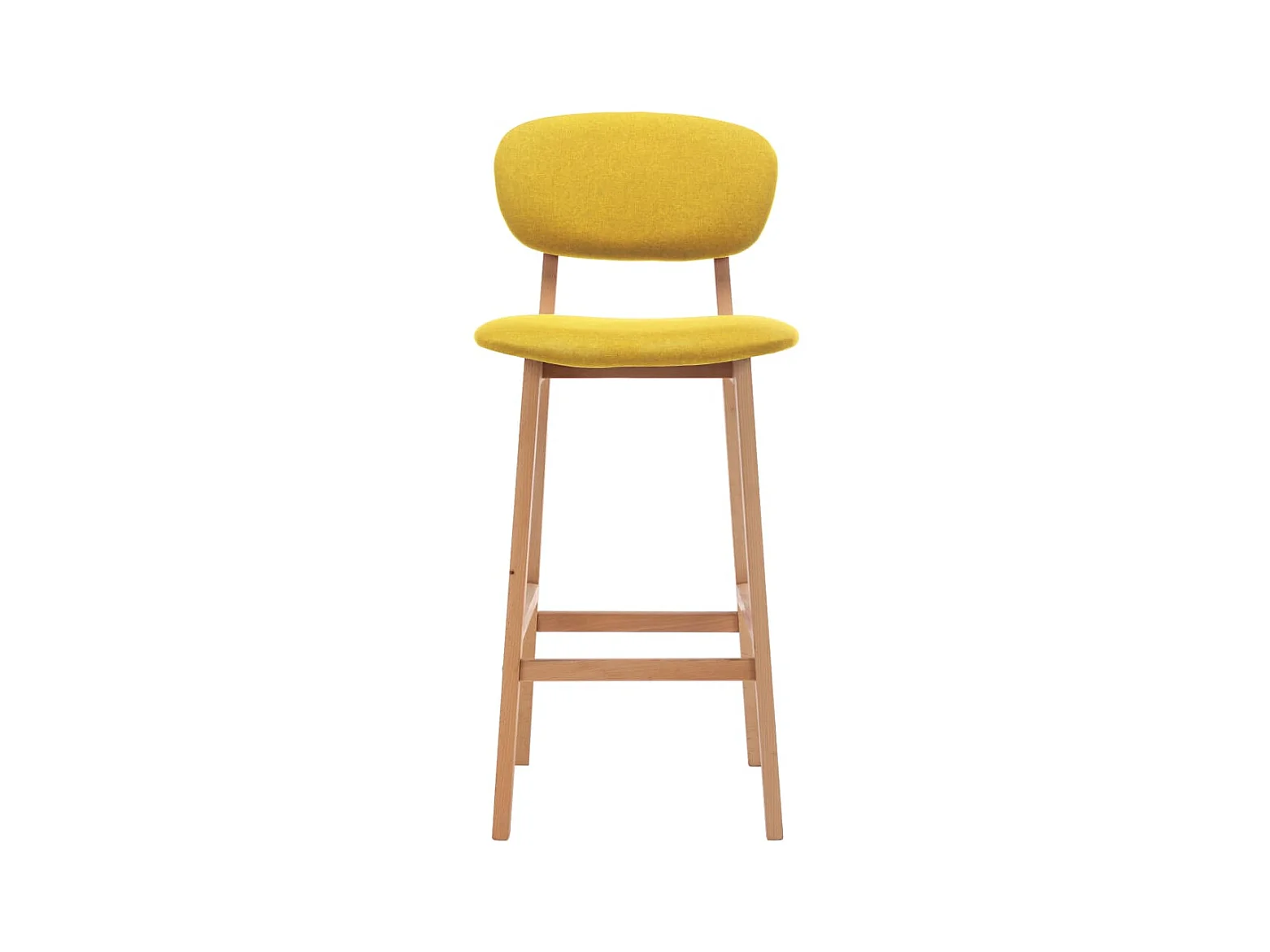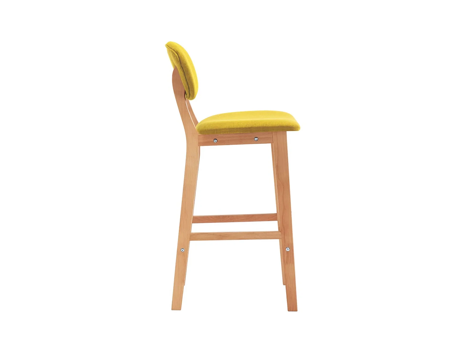Chaise de bar tissu jaune moutarde et bois de hêtre massif Kamila - Lot de 2