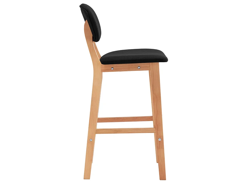 Chaise de bar tissu noir et bois de hêtre massif Kamila - Lot de 2