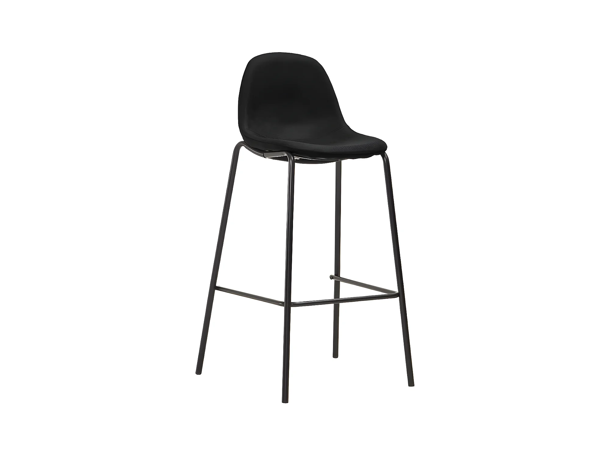 Chaise de bar tissu noir et pieds métal noir Cassie - Lot de 2