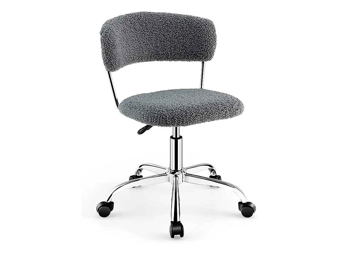 Chaise de Bureau à Domicile, Chaise de Loisirs Pivotante en Fausse Fourrure avec Siège Rembourré Réglable en Hauteur, pour Chambre, Bureau, Chambre d'amis, Gris