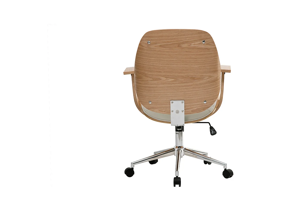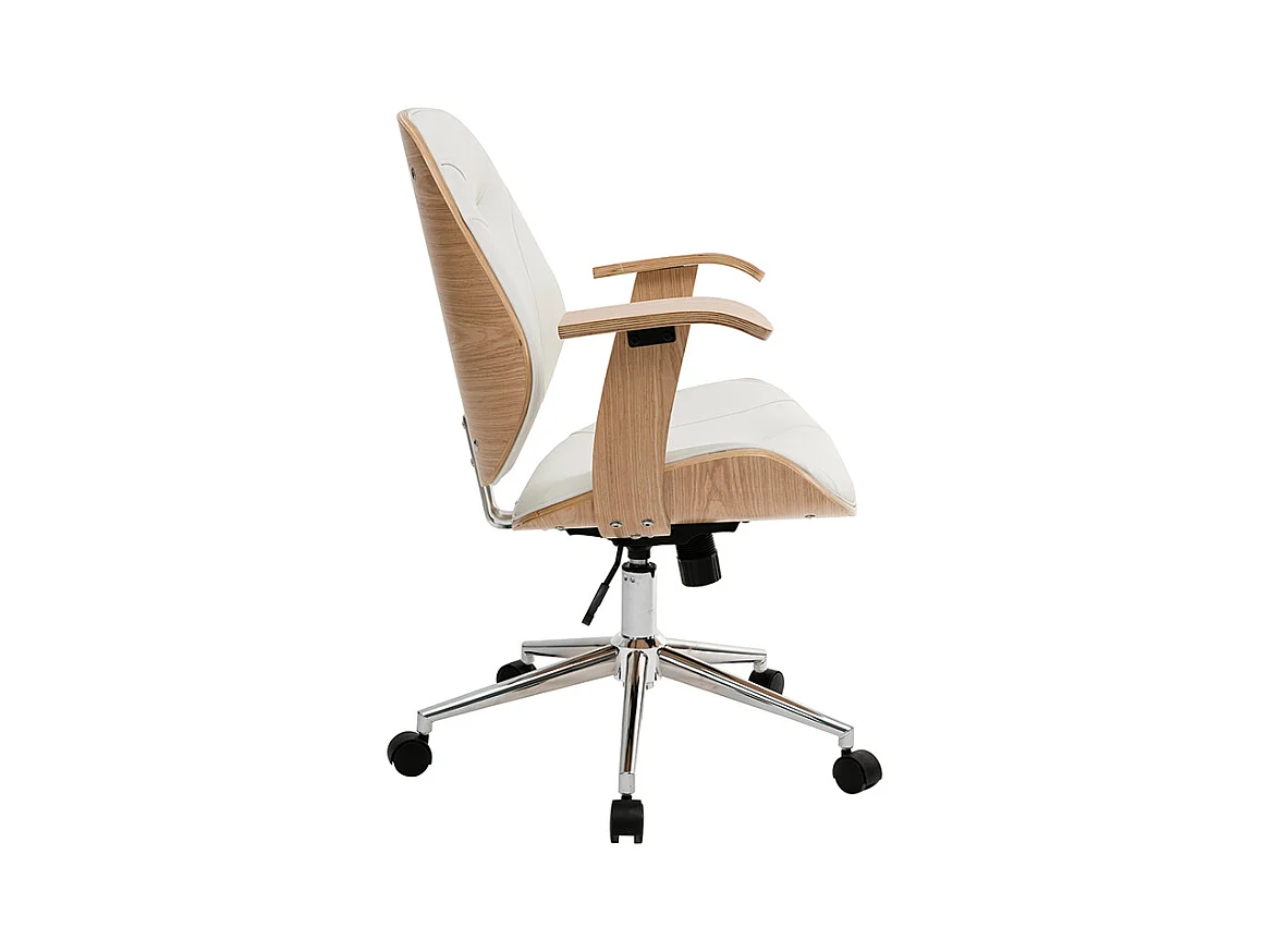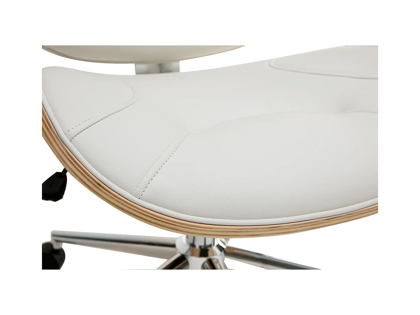 Chaise de bureau à roulettes design blanc, bois clair et acier chromé YORKE